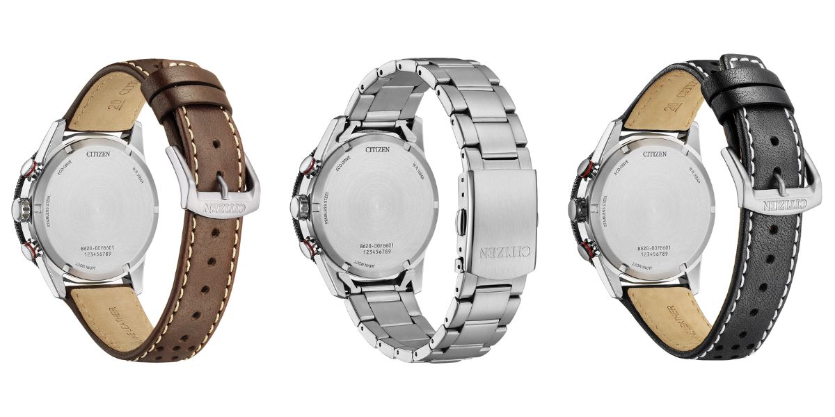 Dessa CA471 Eco-Drive-klockor är utrustade med ett B620-00M-kaliber. Den har en 270 dagars gångreserv och kan laddas med hjälp av vilken ljuskälla som helst. Denna analoga kronograf har verktyg som ett stoppur, en grundläggande datumvisning, en batteriindikator och en 24-timmarsklocka. De tre visarna sägs vara exakta inom 15 sekunder varje månad. Dessutom marknadsför Citizen dessa klockor som vattentåliga till 10 bar.