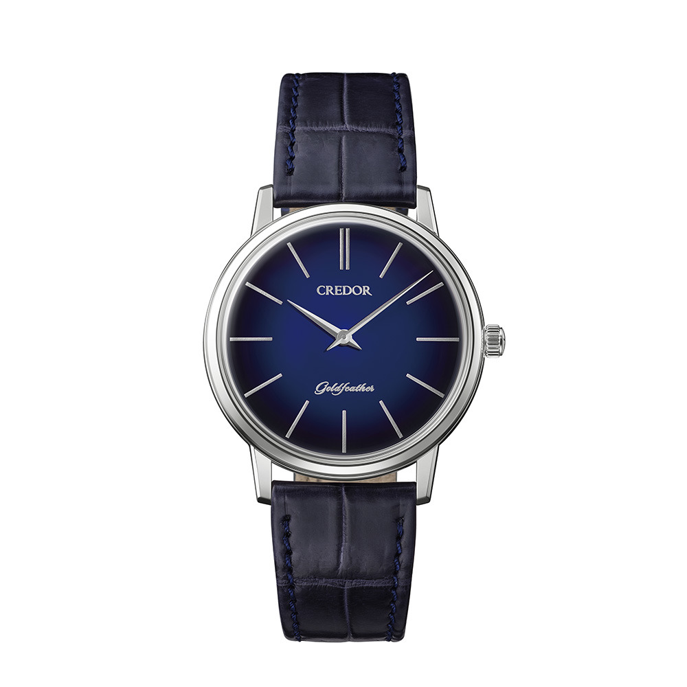 Guldfjäder GBBY967 har en Urushi-lackad urtavla med blå gradient. Konstnärer applicerar lacken i flera lager för att uppnå en jämn, naturlig övergång från mörkt till ljust på urtavlan. Indexen är upphöjda med hjälp av "taka maki-e" med platinapulver. Denna klocka har den manuella kalibern 6810 i ett 37,1 mm platinahus. Den är 7,3 mm tjock med 3 bars vattentäthet och säljs för 3 520 000 JPY (~22 210 USD).