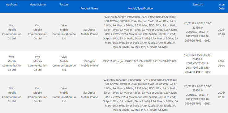 Baserat på en nyligen genomförd 3C-certifiering har Vivo förberett två versioner av X300 Ultra för försäljning på sin hemmamarknad. Å ena sidan har företaget certifierat den vanliga X300 Ultra på 3C med modellnumret V2547A. Tidigare trodde man att X300 Ultra var associerad med modellnummer V2536Avilket senare bevis motbevisar.