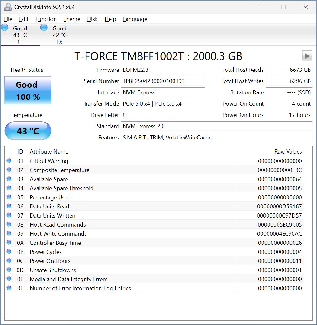 Det gäller dock bara om korrekt kylning säkerställs. Tydligen blir PCIe 5.0 SSD-enheter ännu varmare än sina föregångare. Enbart grafenklistermärket räcker inte, särskilt inte i ett tätt packat fodral till en bärbar dator. Den resulterande värmen fick initialt prestandan att sjunka avsevärt. Endast med ytterligare kylkuddar och kontakt med den bärbara datorns chassi kunde värmen ledas bort, vilket gjorde att T-Force kunde utnyttja sin hastighetspotential fullt ut. Huruvida grafenskiktet ger någon verklig fördel eller främst är en marknadsföringsgimmick kan inte definitivt avgöras i detta test.