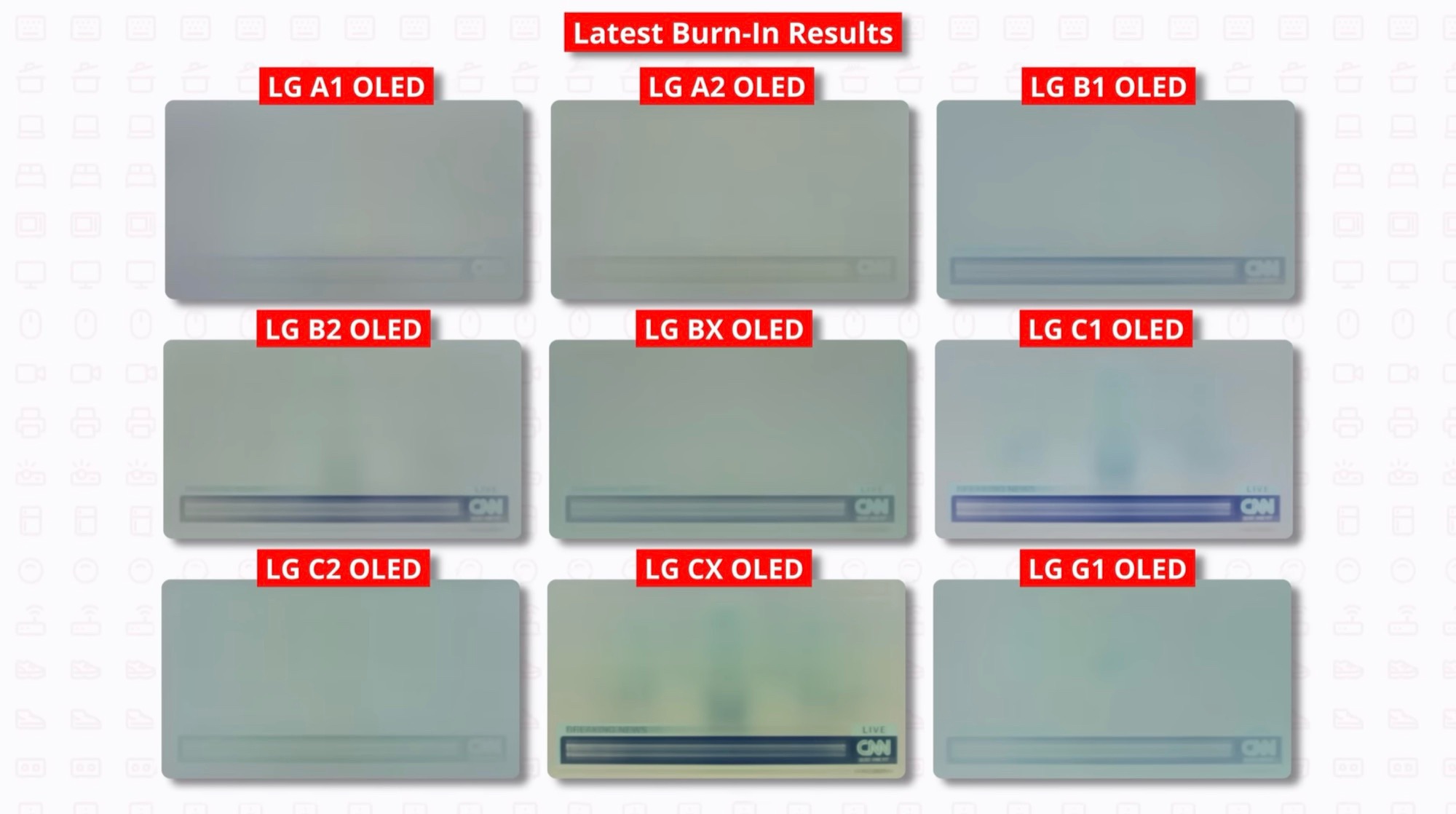 De flesta problem hittades i TV-apparater med LED-bakgrundsbelysning utan lokal dimning. Nästan 60% av dessa modeller kämpade med defekter, och i många fall brände en eller flera lysdioder ut. I jämförelse är fel extremt sällsynta i OLED-TV-apparater. Testet illustrerar också att inbränning inte är ett problem när man tittar på dynamiskt innehåll. Statiskt innehåll, som den tidigare nämnda nyhetstickern, kan skapa synliga spökbilder efter långa perioder av användning med hög ljusstyrka. I praktiken är detta sannolikt främst relevant för PC-monitorer och inte för TV-apparater.