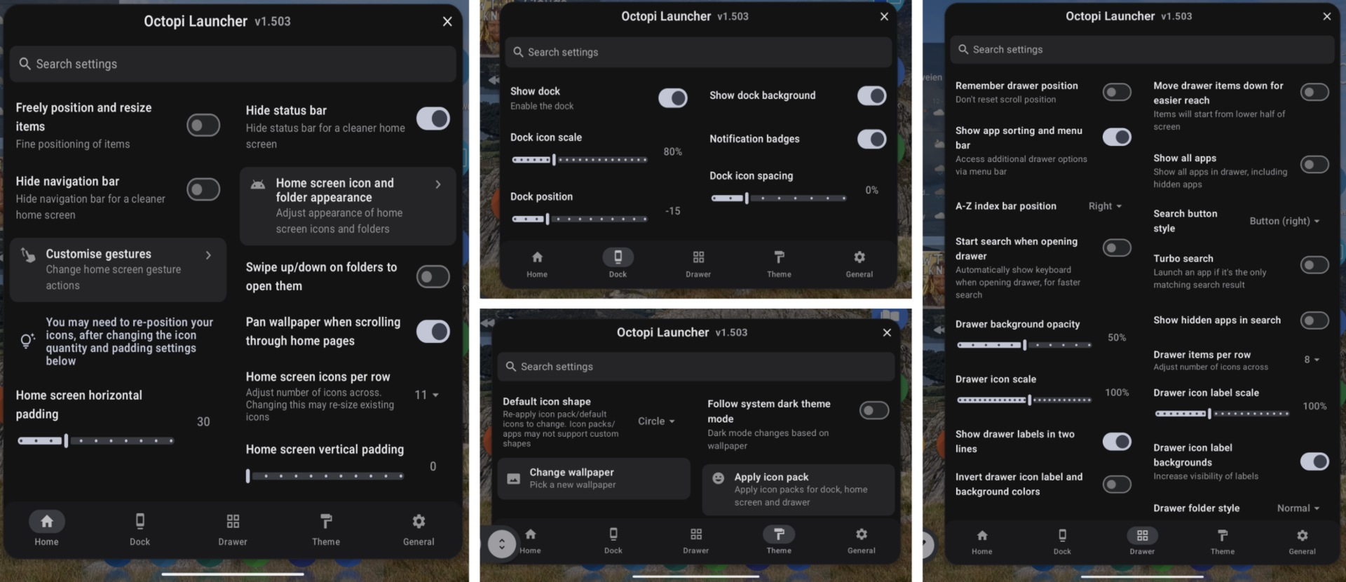 Förutom de oberoende hemskärmarna har Octopi Launcher en båtlast med ytterligare anpassningsalternativ för att tillfredsställa även den mest hardcore Nova eller Lawnchair fan.