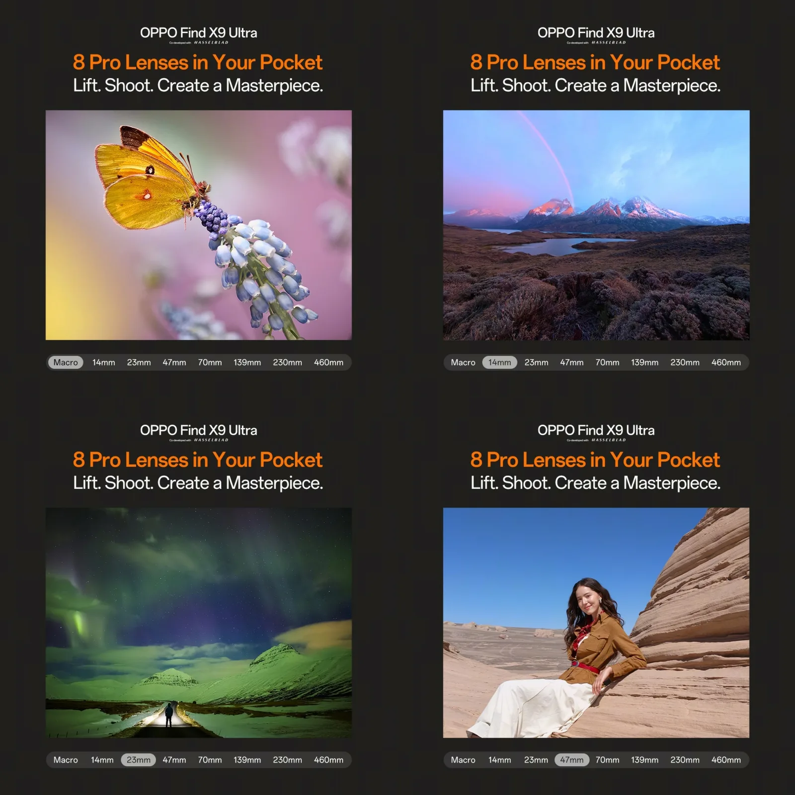 Officiell: Oppo säger att Find X9 Ultra ger dig "8 proffsobjektiv, 14-460 mm" i fickan; marknadsföring i iPhone-stil?