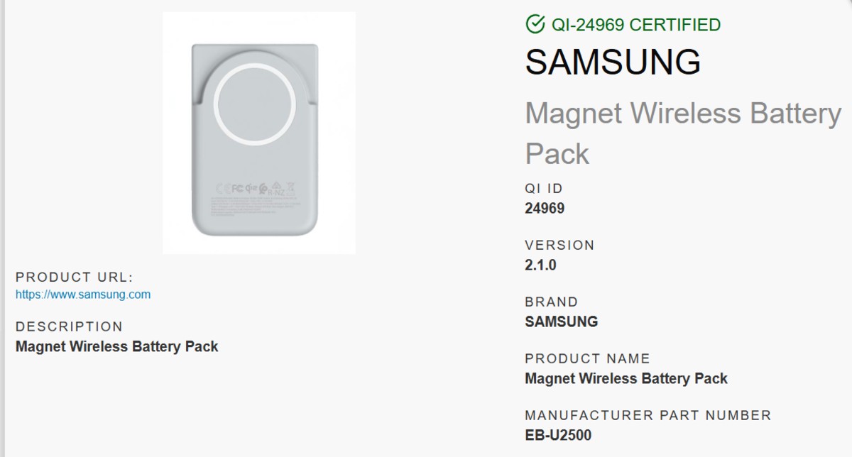 För att ge mer tyngd åt dessa rykten har ett nytt Samsung Magnetic Wireless Battery Pack med modellnummer EB-U2500 dykt upp i Wireless Power Consortiums databas. Detta är certifierat för att stödja 15W Qi2 trådlös laddning och blir Samsungs första trådlösa powerbank med inbyggda magneter. Tillbehöret, som troligen lanseras tillsammans med Galaxy S26, kommer i en ljusgrå finish och har en magnetring som gör att den kan fästas på kompatibla smartphones för sömlös trådlös laddning.