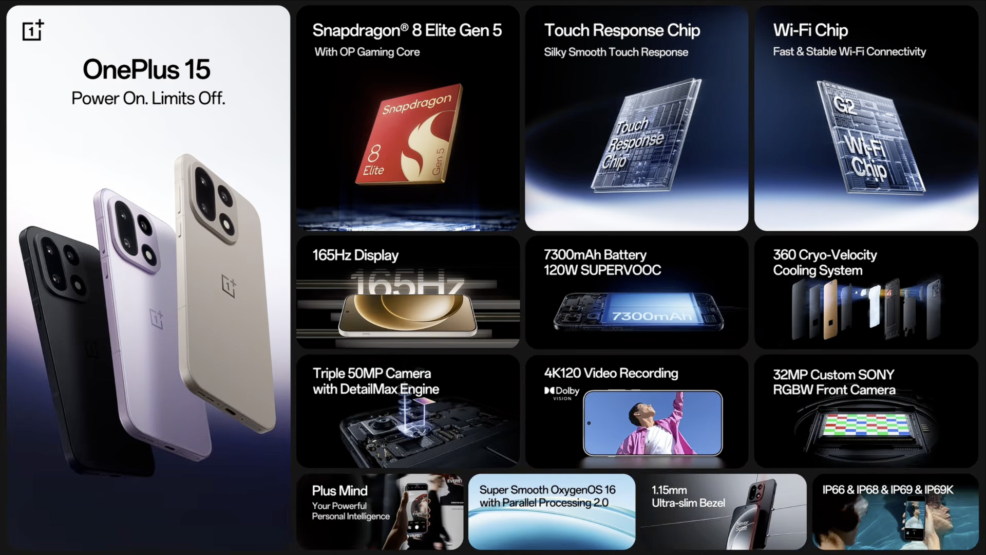 Under tiden har OnePlus bekräftat INR 72,999 1,299.99 och CA $ XNUMX XNUMX startpriser över Indien respektive Kanada. Med andra ord kommer OnePlus 15 att vara dyrare än sina föregångare på dessa marknader. Omvänt kommer euroområdet och Storbritannien att ta emot OnePlus 15 för € 949 / £ 849, ett prisfall på € 50 / £ 50 på OnePlus 13. Fullständig prissättning för OnePlus 15 som OnePlus har avslöjat idag är följande:
