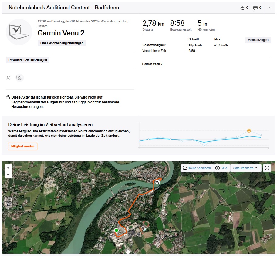Vi ville testa positioneringen i verkliga situationer under en cykeltur. Dessutom använde vi Garmin Venu 2, en smartklocka med mycket exakt positionering.