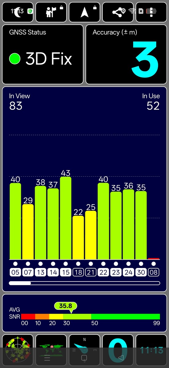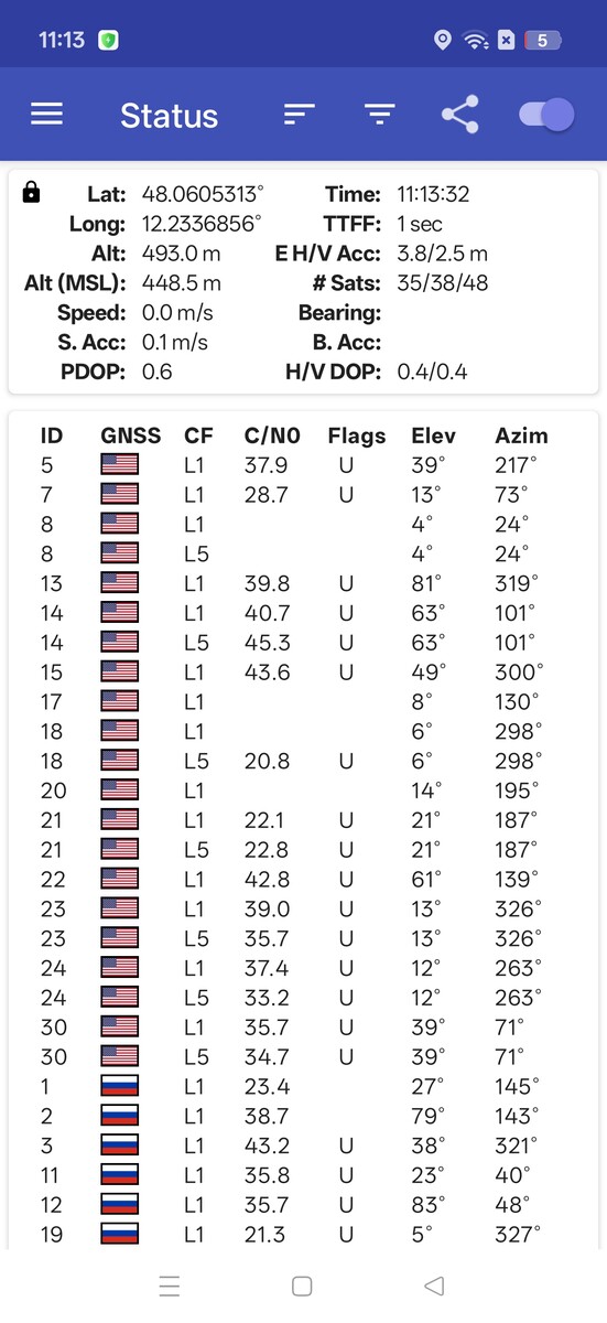 Utomhus lokaliserade OnePlus 15 snabbt vår position med en noggrannhet på några meter. Alla större satellitsystem är tillgängliga för positionering, men tyvärr saknar enheten SBAS för ännu större noggrannhet.