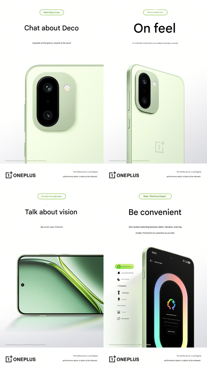Dessutom har bilderna bekräftat att OnePlus Ace 6T kommer att komma med en dubbel kamerainställning på baksidan, med en liknande kameraö som OnePlus 15. Även om varumärket inte bekräftade det ännu, förväntas dessa två förväntas vara 50 MP sensorer. Företaget har dock bekräftat att telefonen kommer att ha en rak skärm och en lättviktsbyggnad.