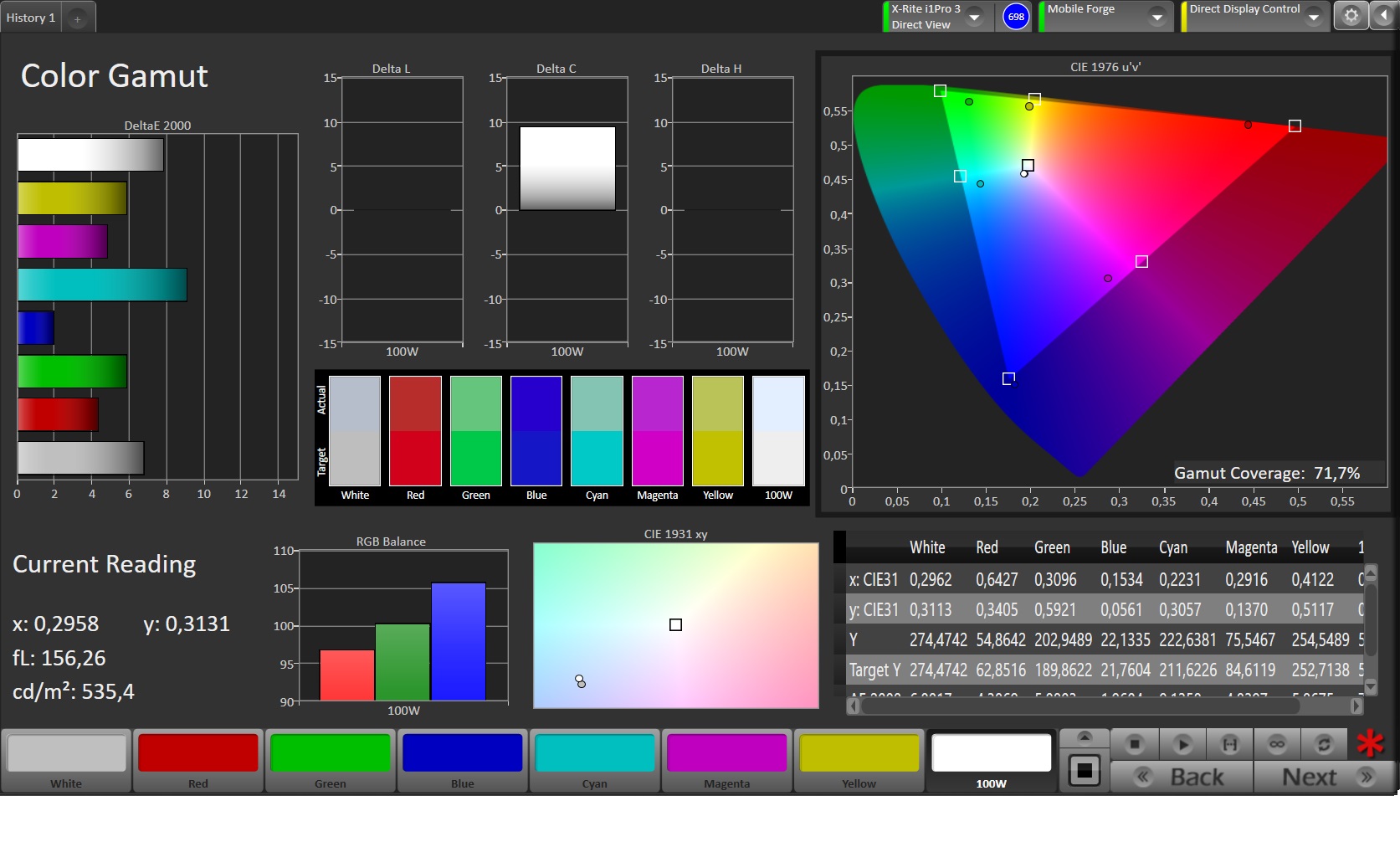 | Colorchecker dE 2000 max. * | 7.89 | 5.3 33% | 10.83 -37% | 5.62 29% | 10.35 -31% |