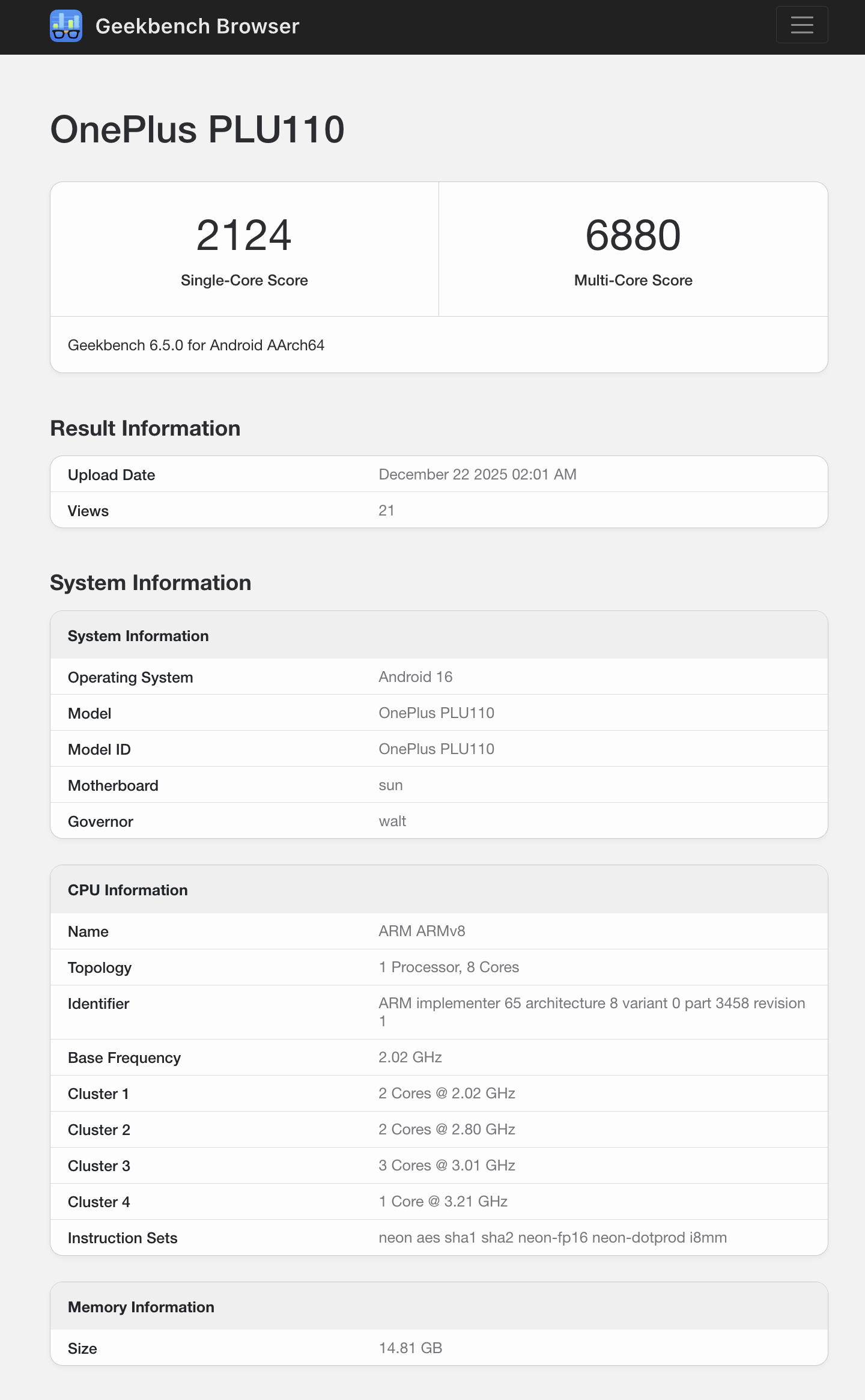 Även om Geekbench inte bekräftar telefonens detaljhandelsnamn, tros PLU110 vara den oannonserade OnePlus Turbo. Enligt båda listorna har OnePlus Turbo 16 GB RAM och Qualcomms senaste Snapdragon 8s Gen 4 chipset. Finns över hela Ingenting telefon (3) och Poco F7 (curr. 529,99 dollar på Amazon), den Snapdragon 8s Gen 4 utnyttjar en enda ARM Cortex-X4-chipset klockad till 3,2 GHz.