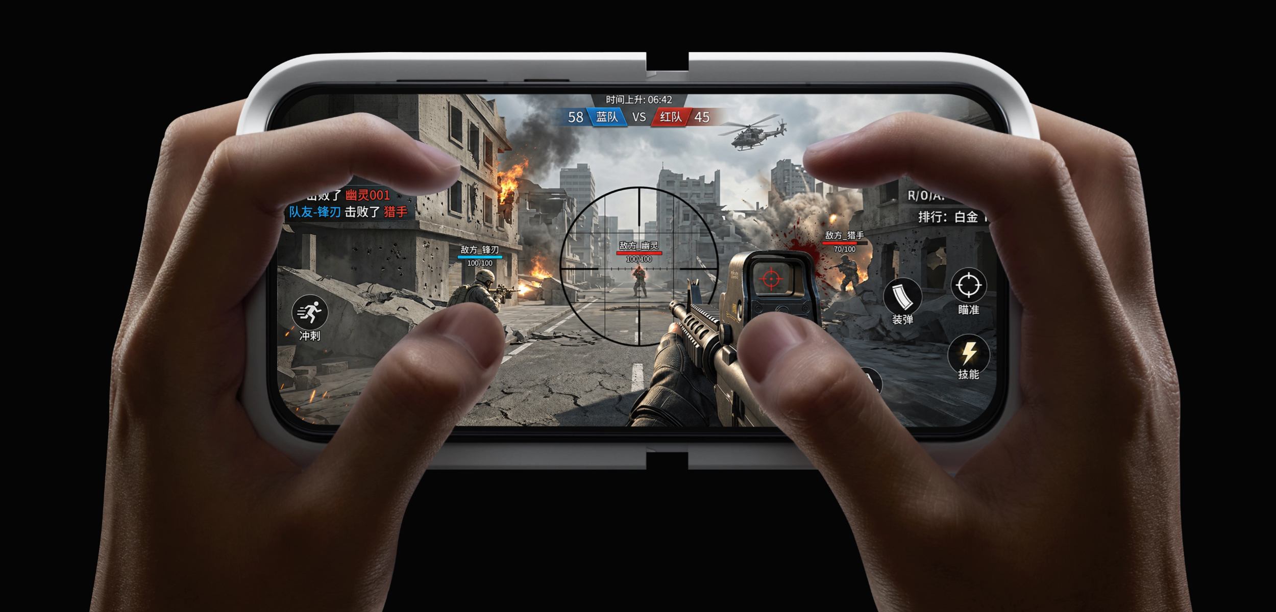 Som bilden ovan och nedan visar, ansluts OnePlus nya styrenhet direkt till Ace 6 Ultras USB-port. Strix G15 omsluter telefonen helt och inkluderar en USB Type-C-port för genomgående laddningsändamål. OnePlus har också integrerat en uppsättning triggers, som bör sitta under ens pekfingrar, tack vare ergonomiska grepp.