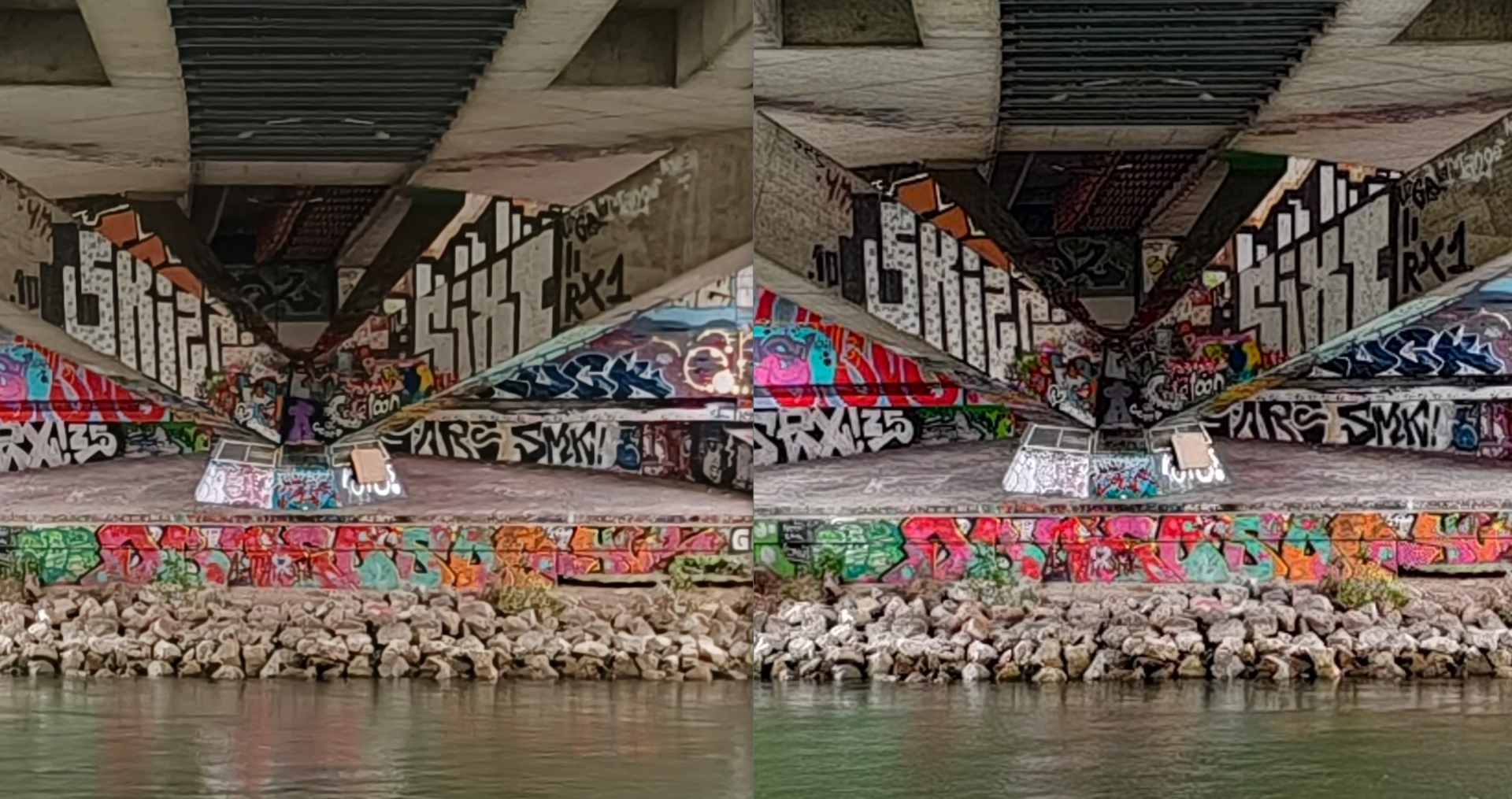 Även på Vivo X200 Ultra är det inte riktigt lika snabbt att ta ett 200MP-foto som att fotografera med 12MP, men processen tar mindre än en sekund. På Oppo Find X9 Pro tar det långt över 5 sekunder. Utan ett stativ är det inte längre praktiskt. Vi tog jämförelsebilderna nedan halvstabiliserade och vilade telefonen på ett broräcke. Båda blev nedslående suddiga, eftersom Find X9 Pro är mycket mer suddig än X200 Ultra.