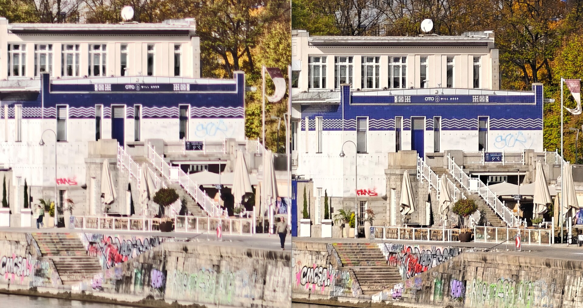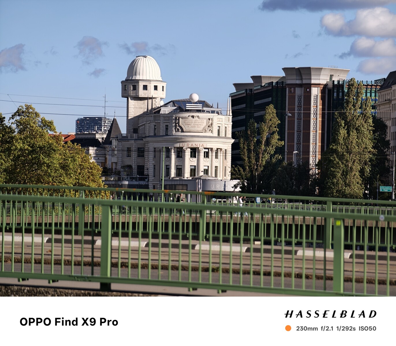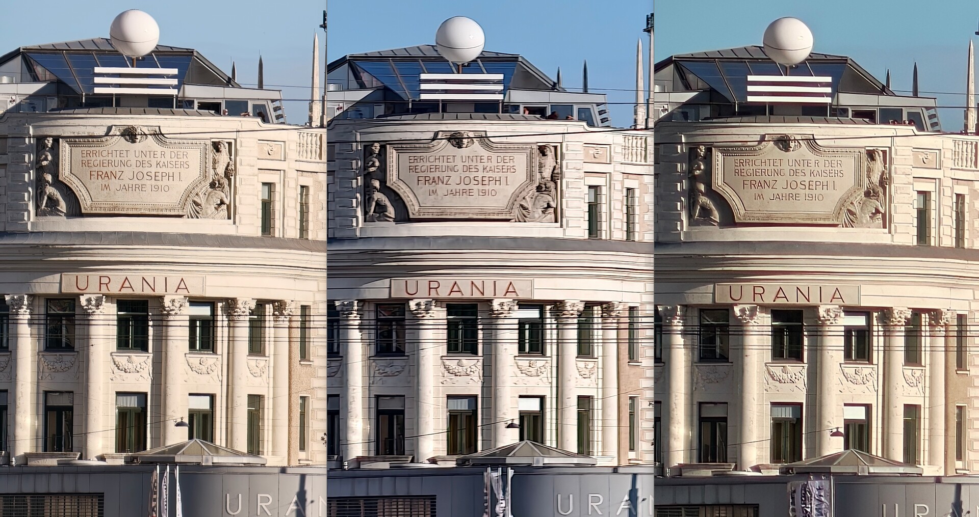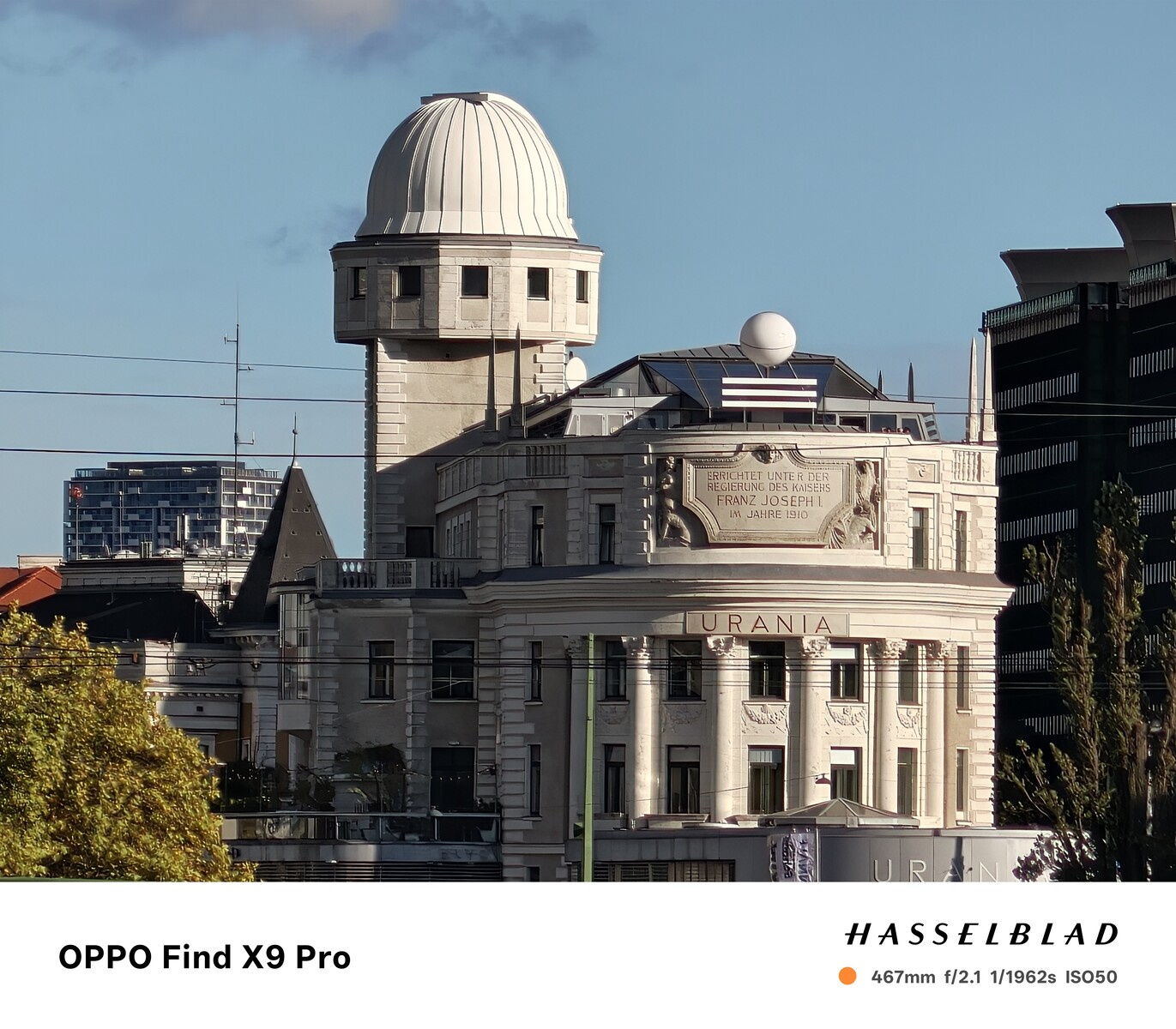 I vår skördejämförelse med Vienna Urania som exempel blir skillnaderna ännu tydligare. Ingenting kan ersätta äkta optisk zoom. Men den större telefotosensorn i Vivo X200 Ultra och kanske dess något bättre zoomalgoritmer kan kompensera bristen på optisk zoom bättre än Oppo Find X9 Pro.