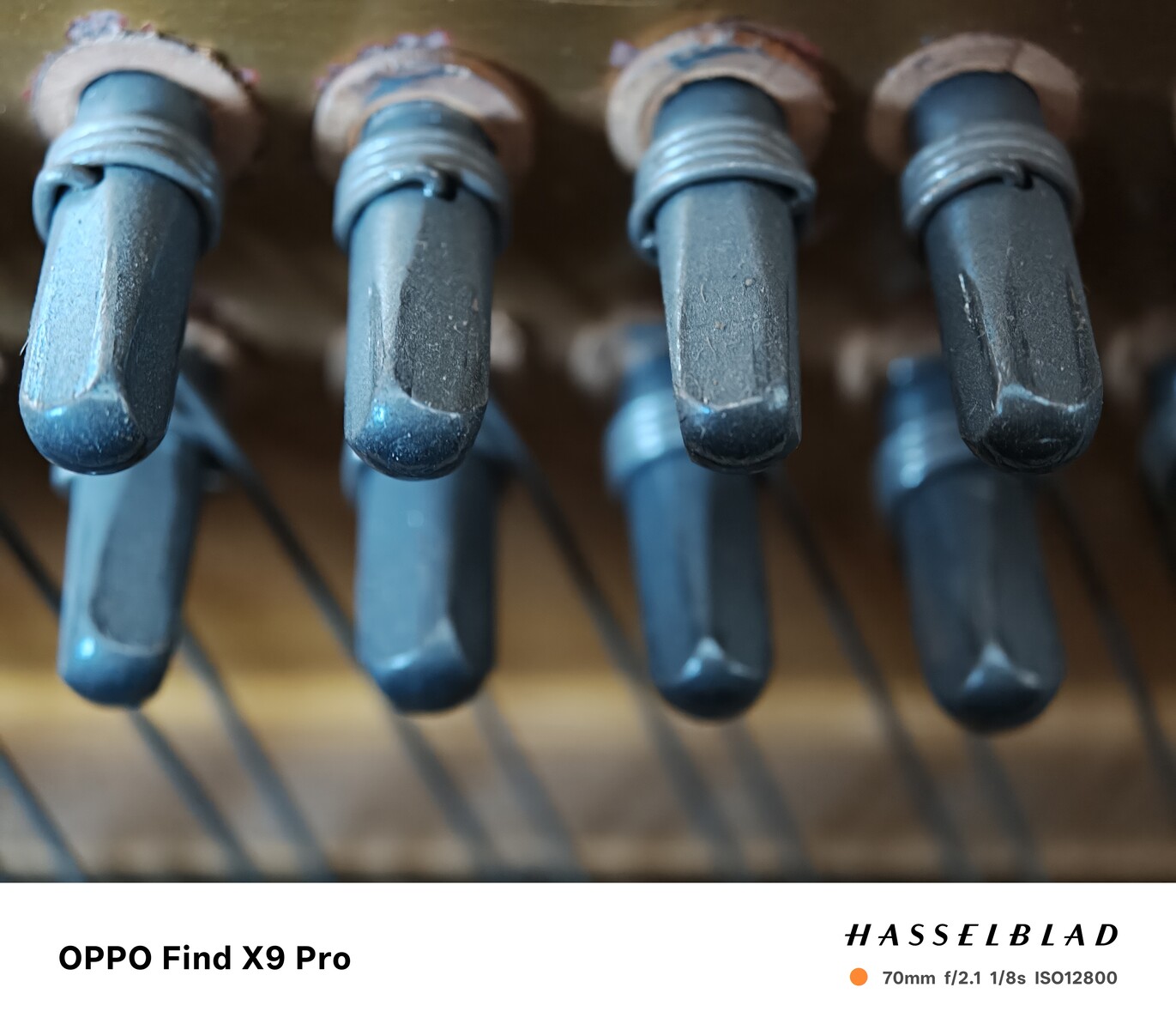 Sist men inte minst tog jag två makrobilder med teleobjektivet. När det gäller inomhusbilden av ett piano var avståndet till motivet ungefär detsamma i båda fallen. Men med lampan kunde Zeiss-kameran bara fokusera på ljuset från ett mycket större avstånd, vilket är anledningen till att den (dammiga) glaskulan fortfarande är synlig här.