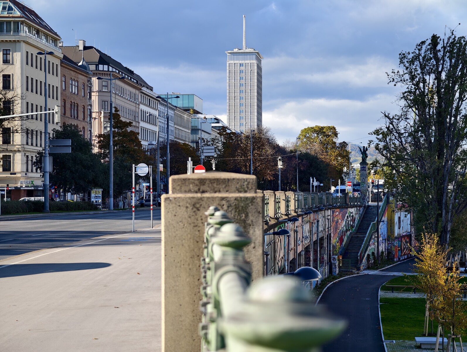 Jag märkte av den här effekten när jag tog bort objektivet och bytte i kameraappen från "Hasselblad teleconverter mode" till det vanliga fotoläget. Huvud- och ultravidvinkelkamerorna täcks av objektivfattningen, men 70 mm-teleobjektivet förblir oskyddat och kan fortfarande användas. Detta orsakar dock de obehagliga effekterna, som jag också fångade i videon nedan. Du kan se hur kameran plötsligt överlagrar färgen på räcket längs Donaukanalen med en uppenbar meganta-nyans.
