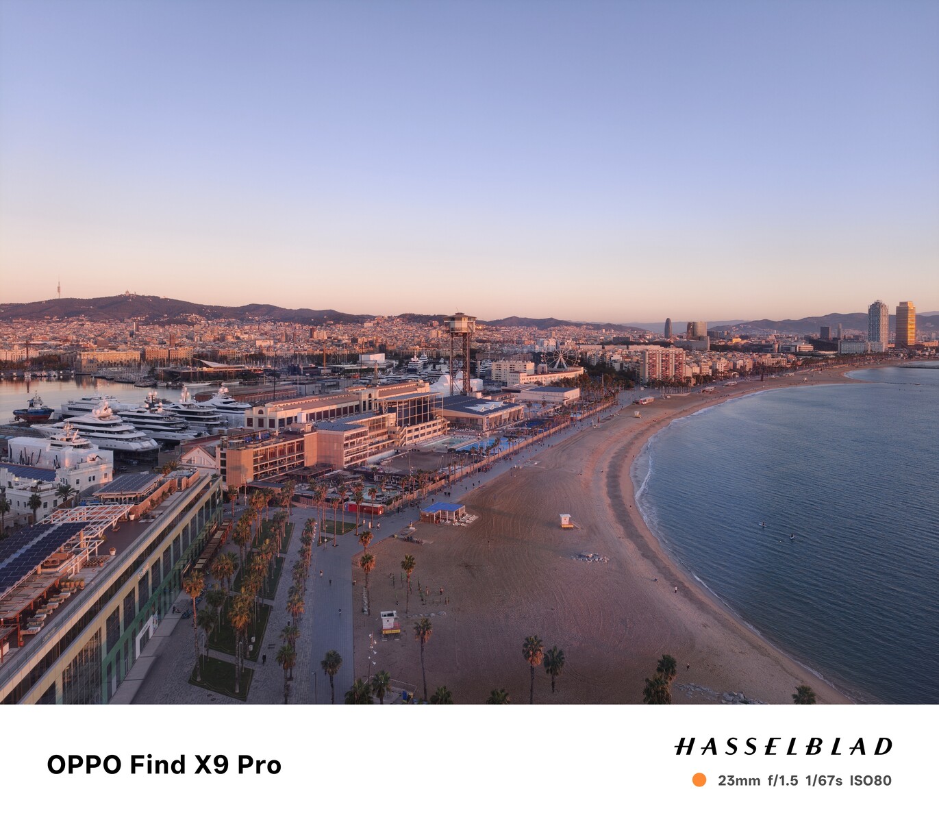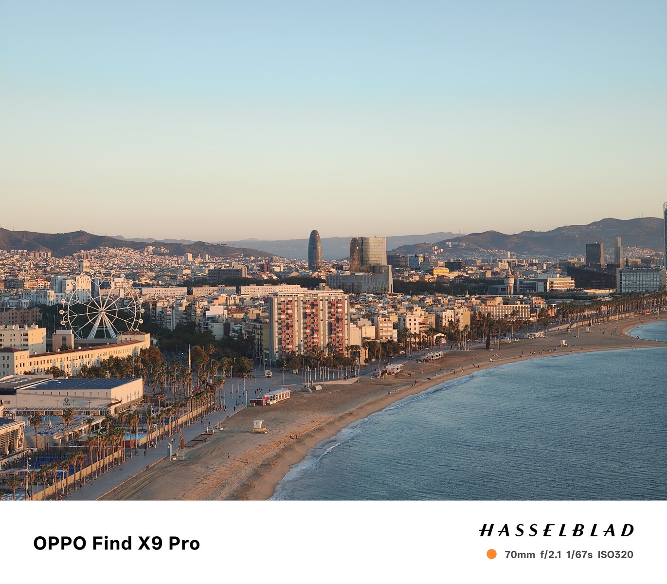 Ibland har Oppo Find X9 Pro problem med vitbalansen även utan att objektivfattningen är monterad. Det problematiska fotot nedan togs från 16:e våningen på W Hotel vid stranden i Barcelona vid soluppgången, utan objektivfattning. Den magentafärgade tonen försvann efter en liten panorering. Vi kan inte säga varför det här problemet ibland uppstår även när den multispektrala sensorn inte är täckt. Reflektioner från fönstret kan ha orsakat problem i det här fallet. Oppo behöver definitivt göra förbättringar här