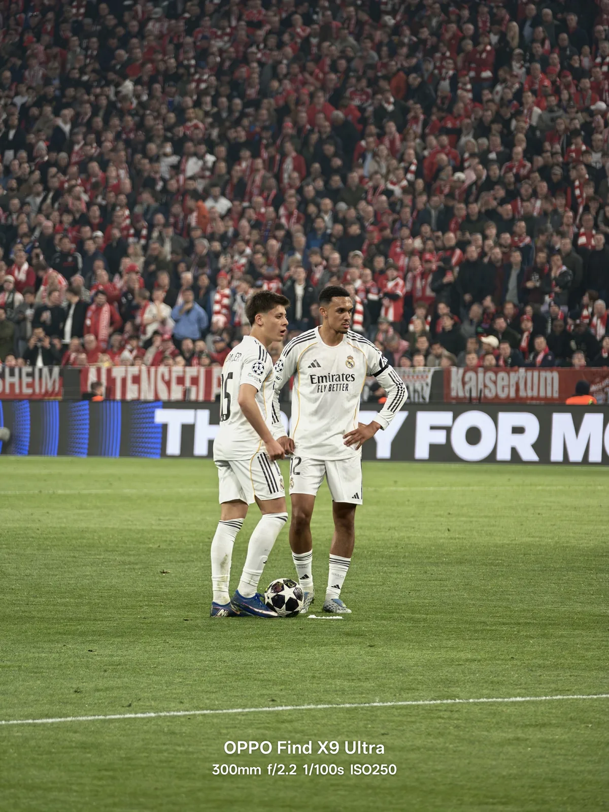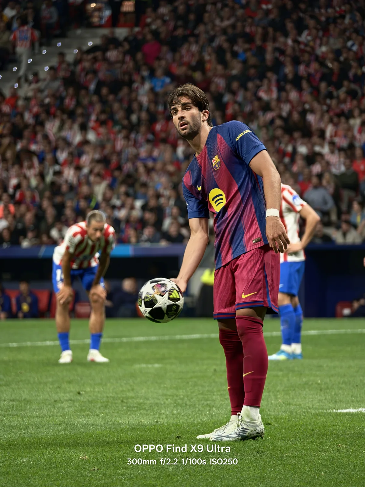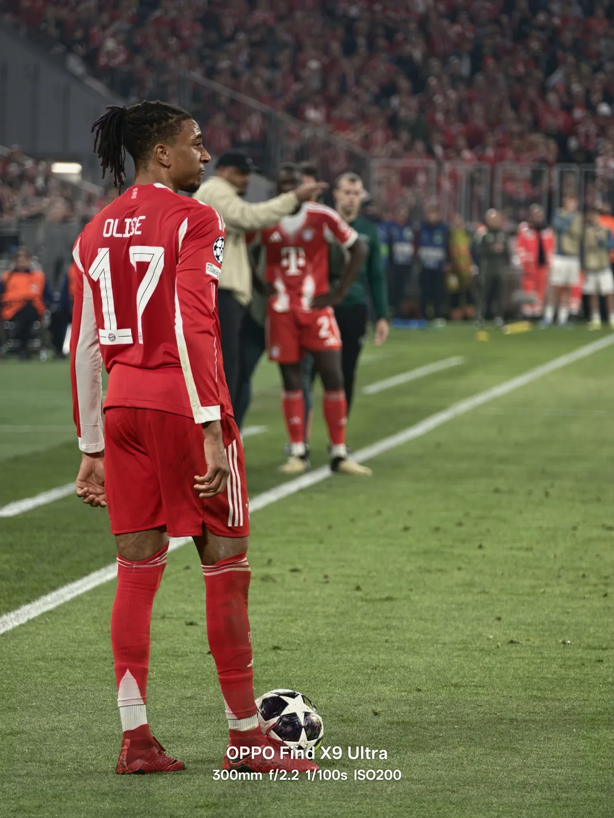 Fotoexempel som delats på X belyser den stora kraften och mångsidigheten i kamerainställningen med dubbla periskop, särskilt under liveevenemang som Champions League-kvartsfinalerna, där kamerans räckvidd är viktig. Bilder tagna med 200MP 3x periskop, parat med Oppos nya 300 mm telekonvertervisar en fantastisk bildkvalitet - trots den komprimering som naturligt uppstår när man delar bilder på sociala medier.