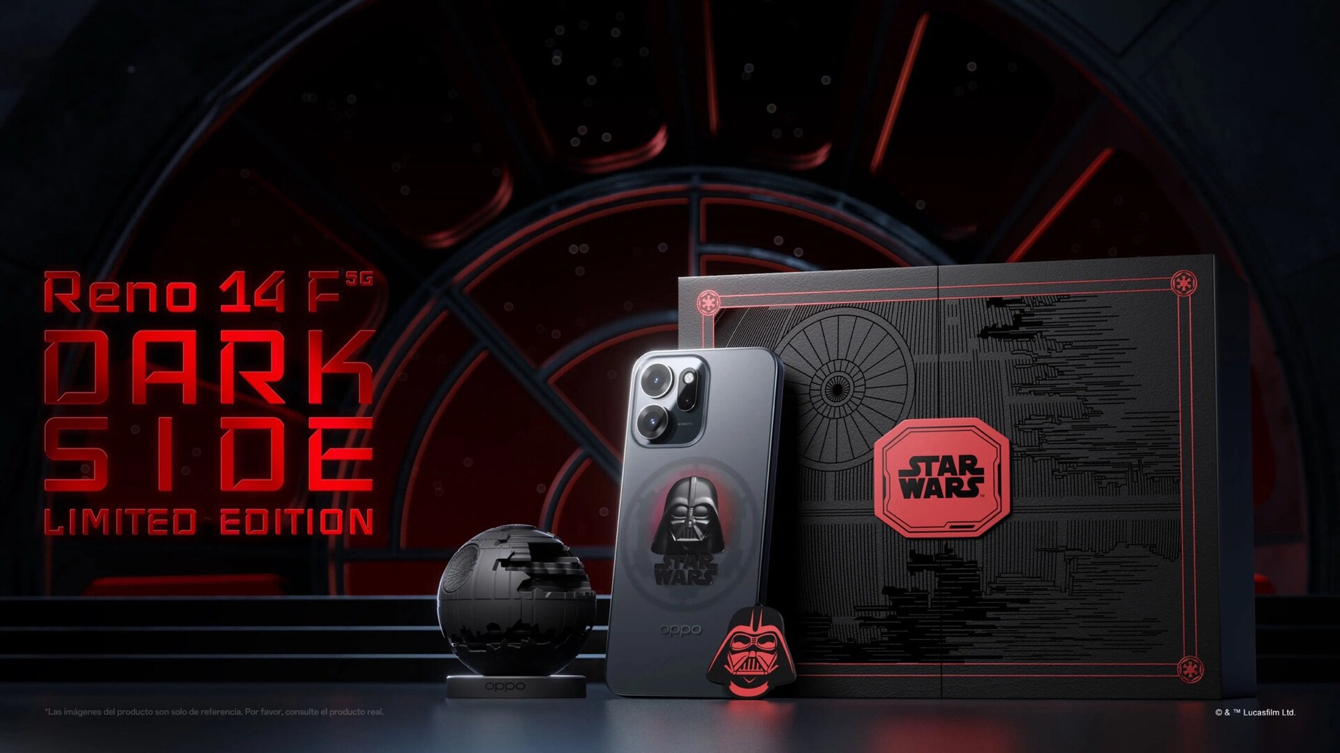 Oppo har presenterat Star Wars Dark Side Limited Edition av Reno14 F. Den ger mellanklassmobilen flera designförändringar som leds av en slående bakpanel med en Darth Vader-hjälm, ett Death Star-emblem och en Star Wars-logotyp. Ramen och baksidan har en mörkgrå finish och strömknappen har en röd accentfärg.