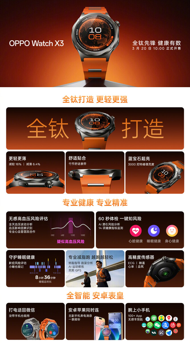 Samtidigt sägs det medföljande 646 mAh-batteriet hålla i upp till 5 dagar i smartwatch-läge. Den nya Snapdragon W5 chipset bör dock hjälpa Watch X3 att köra till 16 dagars batteritid i energisparläge. Watch X3 utlovar också en rad hälsoövervakningssensorer, inklusive sådana som är dedikerade till att ta ett EKG och kontrollera hudtemperaturen. Oppo tar ut CNY 2 799 (~ $ 405) för Watch X3 i ett urval av svart, orange och titanfinish.