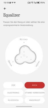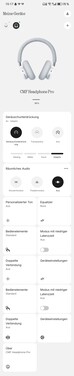 De 40 mm stora högtalarelementen levererar en fyllig bas, som kan justeras med en skjutomkopplare. CMF Heaphone Pro levererar väl avrundade mellantoner för sång och ganska exakta höga toner, men i det superhöga området blir prispunkten ibland uppenbar, eftersom dessa frekvenser inte alltid återges rent. Mellantonerna är inte särskilt närvarande, men detta kan enkelt kompenseras med equalizern. LDAC ger högupplösta detaljer, och ett ljudjack (3,5 mm) finns också som alternativ. Ljudutmatning via USB är inte möjlig. Sammantaget levererar CMF Headphones Pro ett bra ljudpaket.