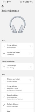 Kontrollerna på hårdvaran är intuitiva och enkla att använda: Den högra öronkudden har en taktil ratt för volym/play-paus (vrid/svep). I den vänstra öronsnäckan sitter strömbrytaren och reglaget för basförstärkning. Apptillägget glänser med equalizers, personliga ljudkurvor och uppdateringsmeddelanden. Det finns också en knapp för att aktivera röstassistenten.