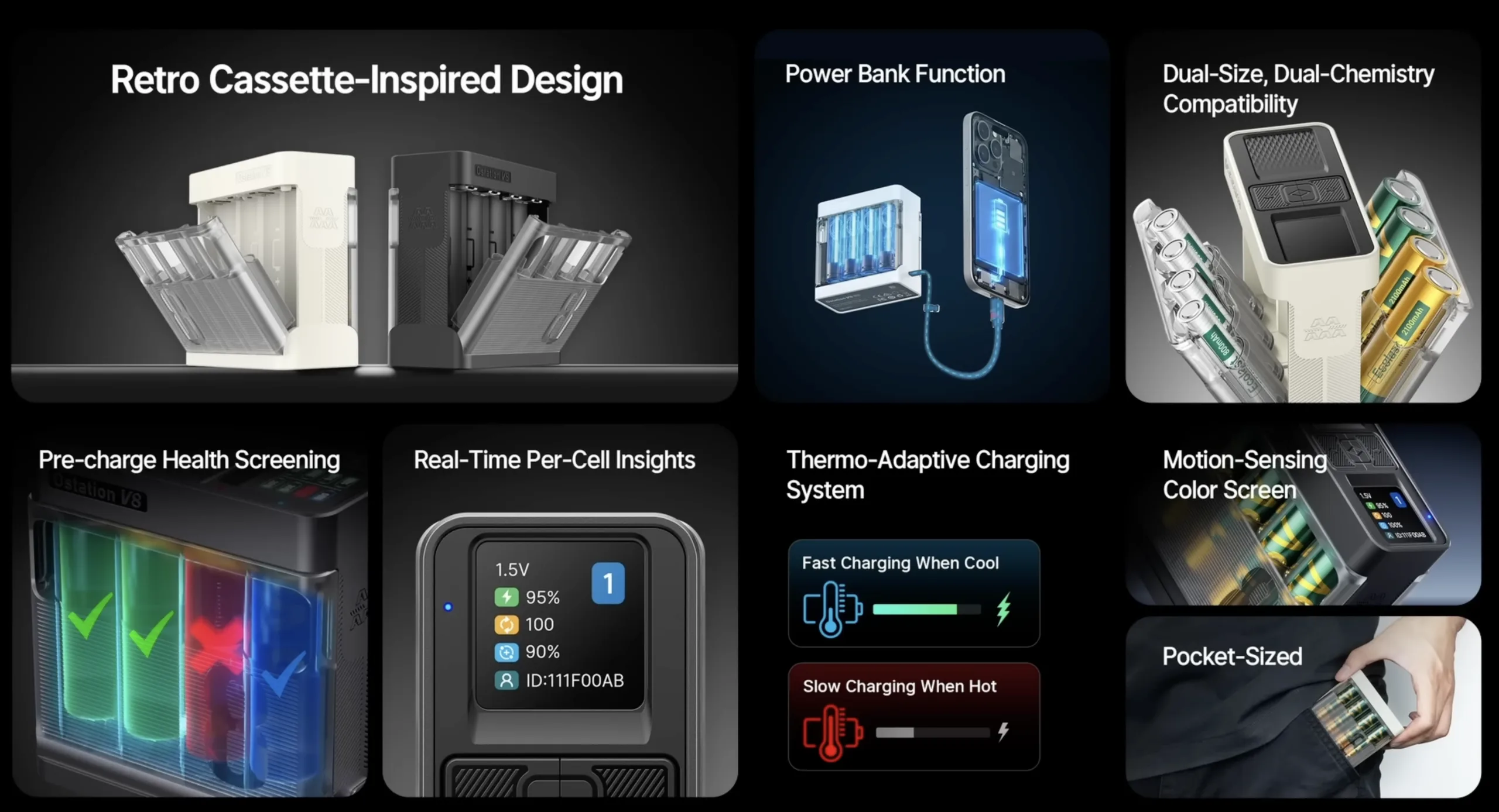 Hur som helst finns det tydliga skillnader i fråga om funktioner mellan Pro- och icke-Pro-versionerna. Ostation V8 Pro kan också användas som powerbank och ladda enheter som t.ex. en smartphone med AAA- eller AA-batterier. Med Olight Ecolast-celler bör ungefär 24Wh finnas tillgängligt. Detta är i allmänhet tillräckligt för en full laddning av ett smartphonebatteri, som vanligtvis har en kapacitet på under 20Wh. Non-Pro-versionen saknar också den integrerade kabeln.
