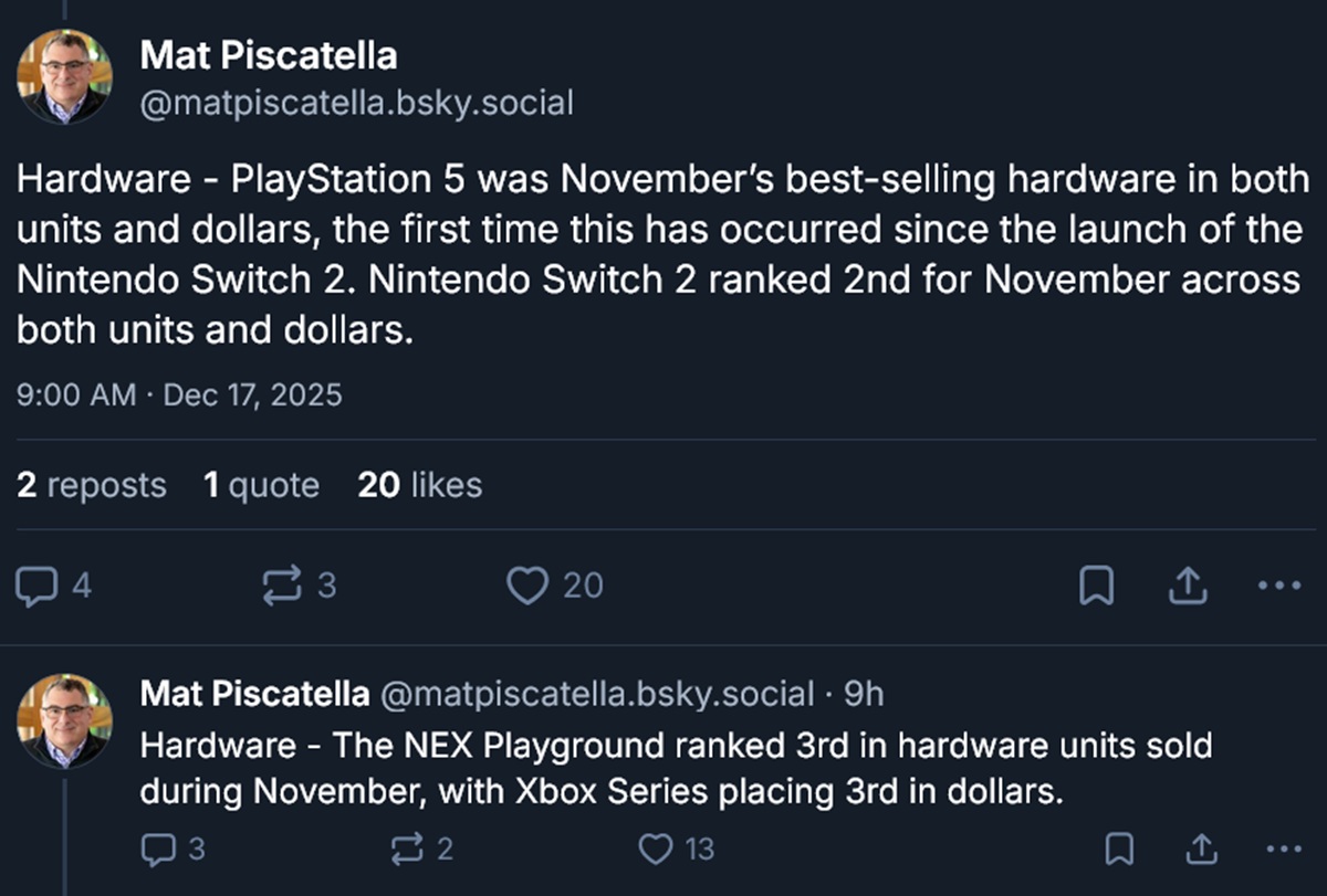 Switch 2 har varit en Switch 2 har varit en framgång för Nintendo och överträffar förväntningarna för detaljhandeln. Ändå visar sig Sonys spelsystem vara motståndskraftiga, efter att PS5-försäljningen toppade Circanas listor i november. Den amerikanska datan visar att PlayStation-konsolen hamnar i topp för första gången sedan dess handhållna rivals lanseringsdatum.