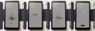 Boox liknar en smartphone, med en matt E Ink Kaleido 3 pekskärm för bländfri läsning, dubbla mikrofoner och stereohögtalare. Fysiska kontroller inkluderar en strömknapp på höger kant och smart- och volymknappar på vänster sida. En 16 MP-kamera med blixt sitter på baksidan.
