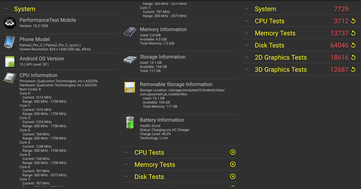 PassMark-riktmärken antyder att prestandan är jämförbar med en Samsung S10 eller A52.