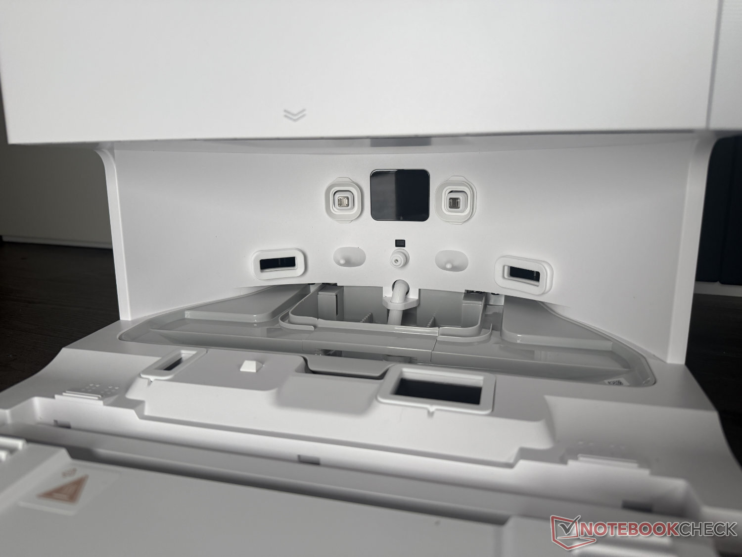 Därefter följer den vanliga upparbetningen i stationen, dvs. dammsugning av dammbehållaren med drygt 70 dB, rengöring av moppenheten, som också är ganska högljudd under en kort stund, och sedan torkning. Under denna process väsnas stationen under flera timmar med strax under 40 dB - hörbart, men inte särskilt högt.