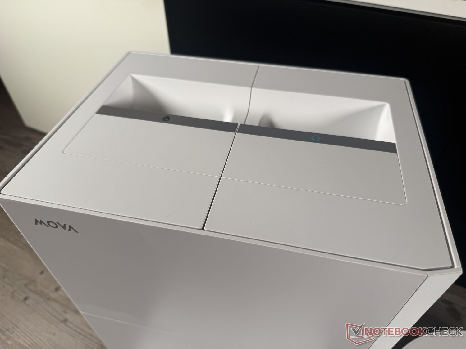 Mova har också en speciell funktion när det gäller navigering. Mova använder inte det klassiska lasertornet i S70 Roller. Istället placerar tillverkaren en dToF-sensor (Direct-Time-of-Flight) i roboten och förser den med en bred siktspalt framtill. Detta ger en höjd på endast 90 mm utan att lasertornet behöver dras in, vilket är ett mycket lågt värde för en robotdammsugare med moppvals. Mova S70 Roller är därför bara en centimeter högre än Roborocks nuvarande flaggskepp, t.ex Saros 20 (ca 1 290 euro på Amazon), som använder två roterande moppar.