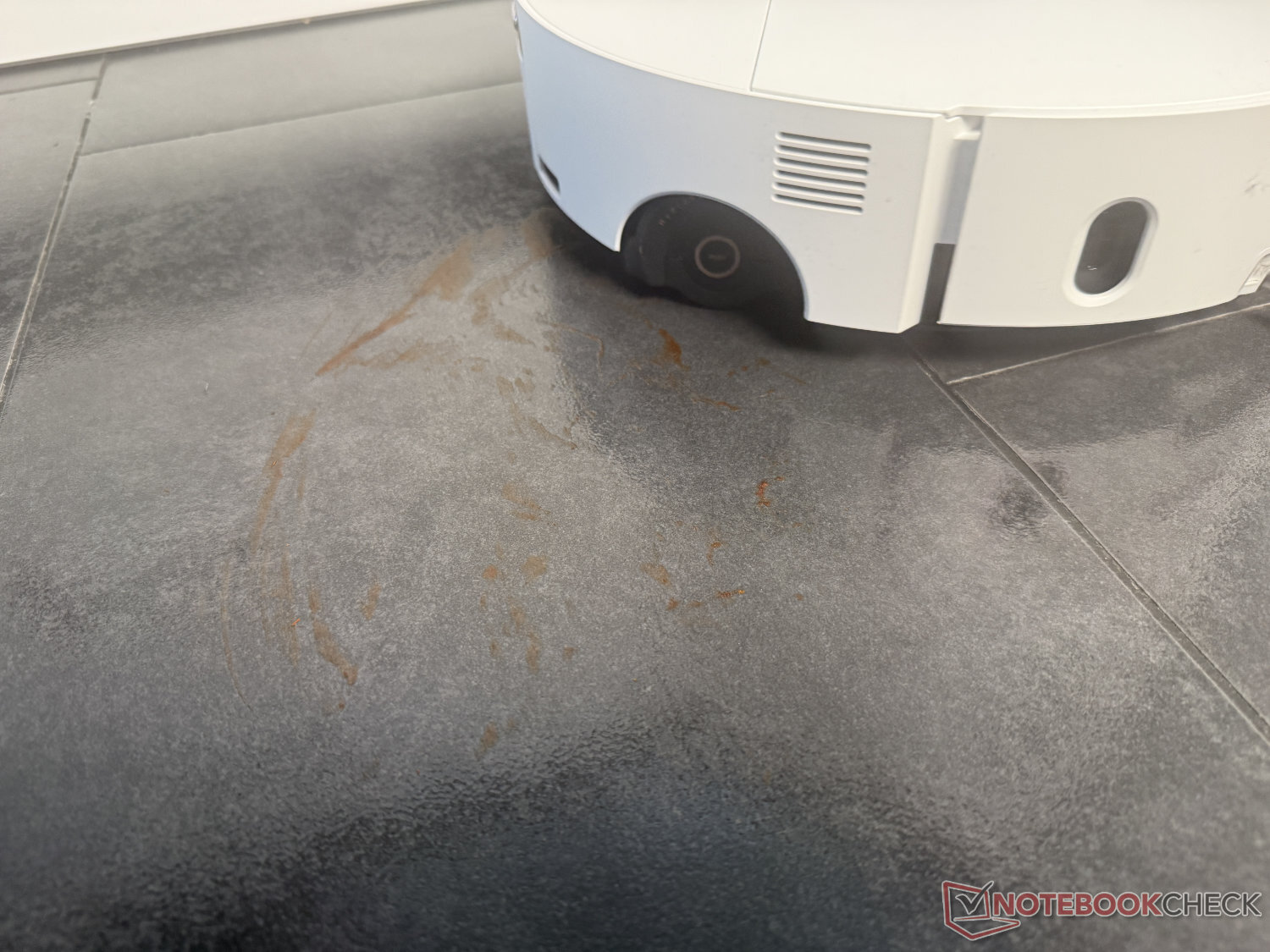 För det mesta avlägsnade moppenheten på ett tillförlitligt sätt vardaglig smuts i testet. Den når dock sina gränser med envis smuts som intorkade fläckar. Det krävs minst flera rengöringsomgångar för att uppnå ett acceptabelt resultat. Här skulle en dosering av rengöringsmedel vara till hjälp. Det är också synd, men förståeligt i den här prisklassen, att det inte finns någon AI-fläckdetektering, med vilken robotdammsugaren automatiskt skulle rengöra områden med kvarvarande smuts flera gånger. Vi kan förmodligen förvänta oss båda för Mova S70 Ultra Roller.