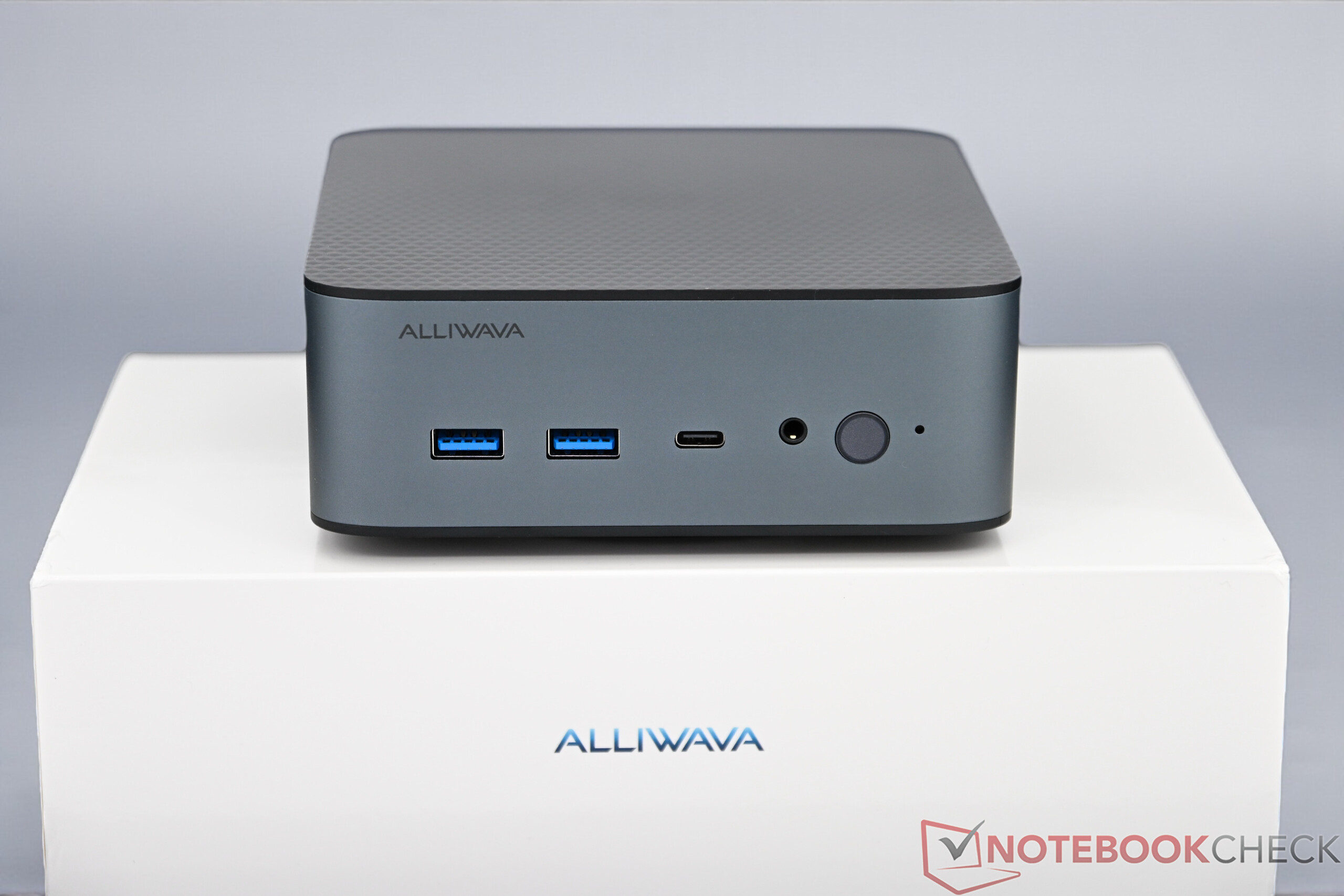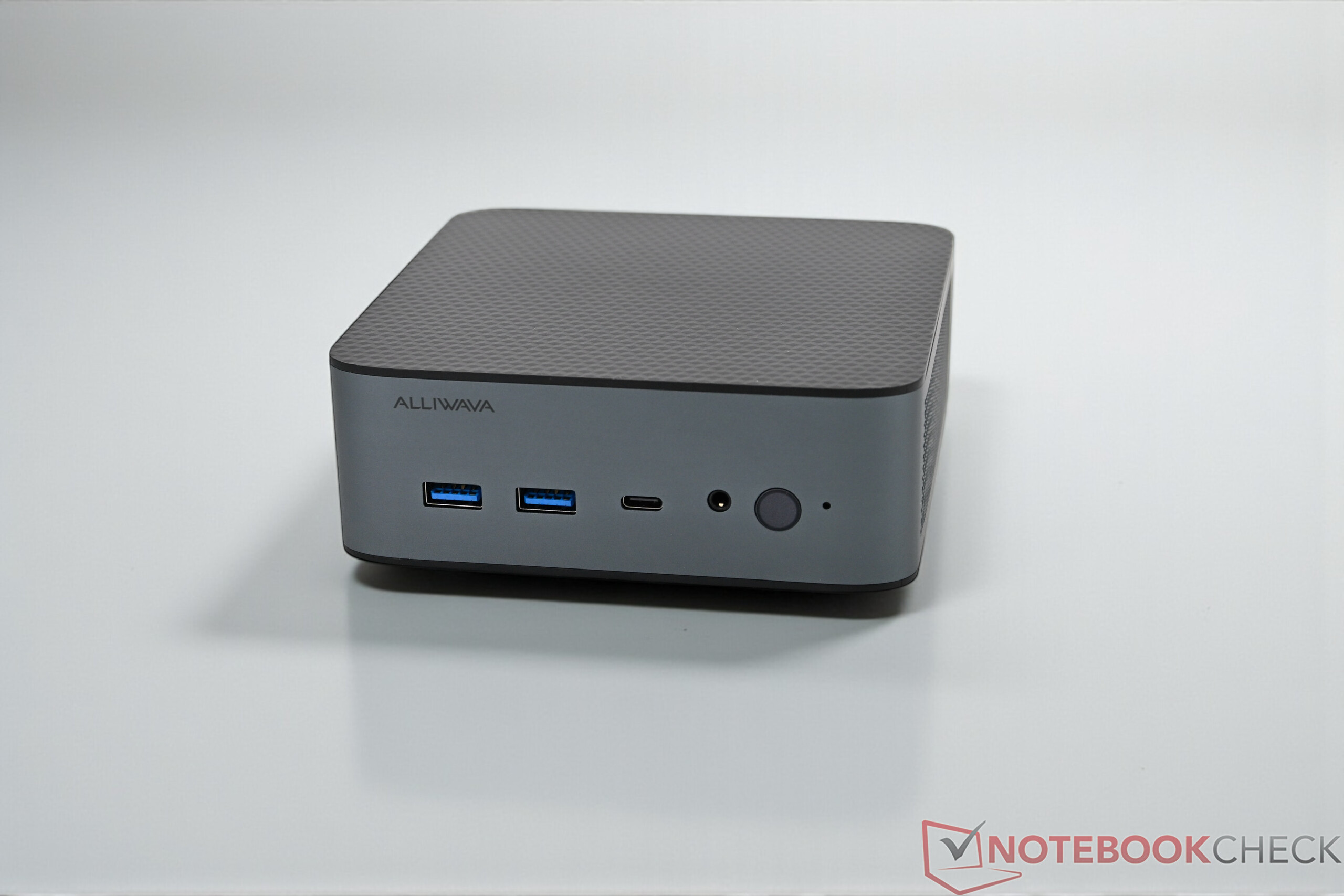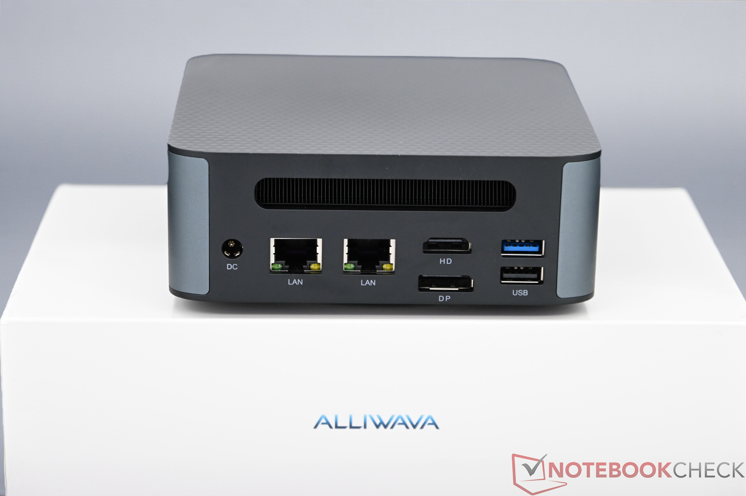 Alliwava H90 Pro levereras i ett högkvalitativt aluminiumhölje med kompakta mått och en vikt på cirka 500 gram. Medan basen är tillverkad av aluminium är höljets lock och undersida tillverkade av plast, vilket knappast försämrar det övergripande solida och högkvalitativa intrycket. Anslutningarna är förnuftigt fördelade över framsidan och baksidan och erbjuder ett bra urval för daglig användning på kontoret eller i hemmet. Moderna gränssnitt som USB4 eller OCuLink måste man dock avstå från. Trots detta kan Alliwava H90 Pro styra upp till tre bildskärmar samtidigt. Nätverksutrustningen med två 2,5 gigabit LAN-portar och snabbt WLAN hör också till styrkorna hos denna kompakta mini-dator från Fjärran Östern.