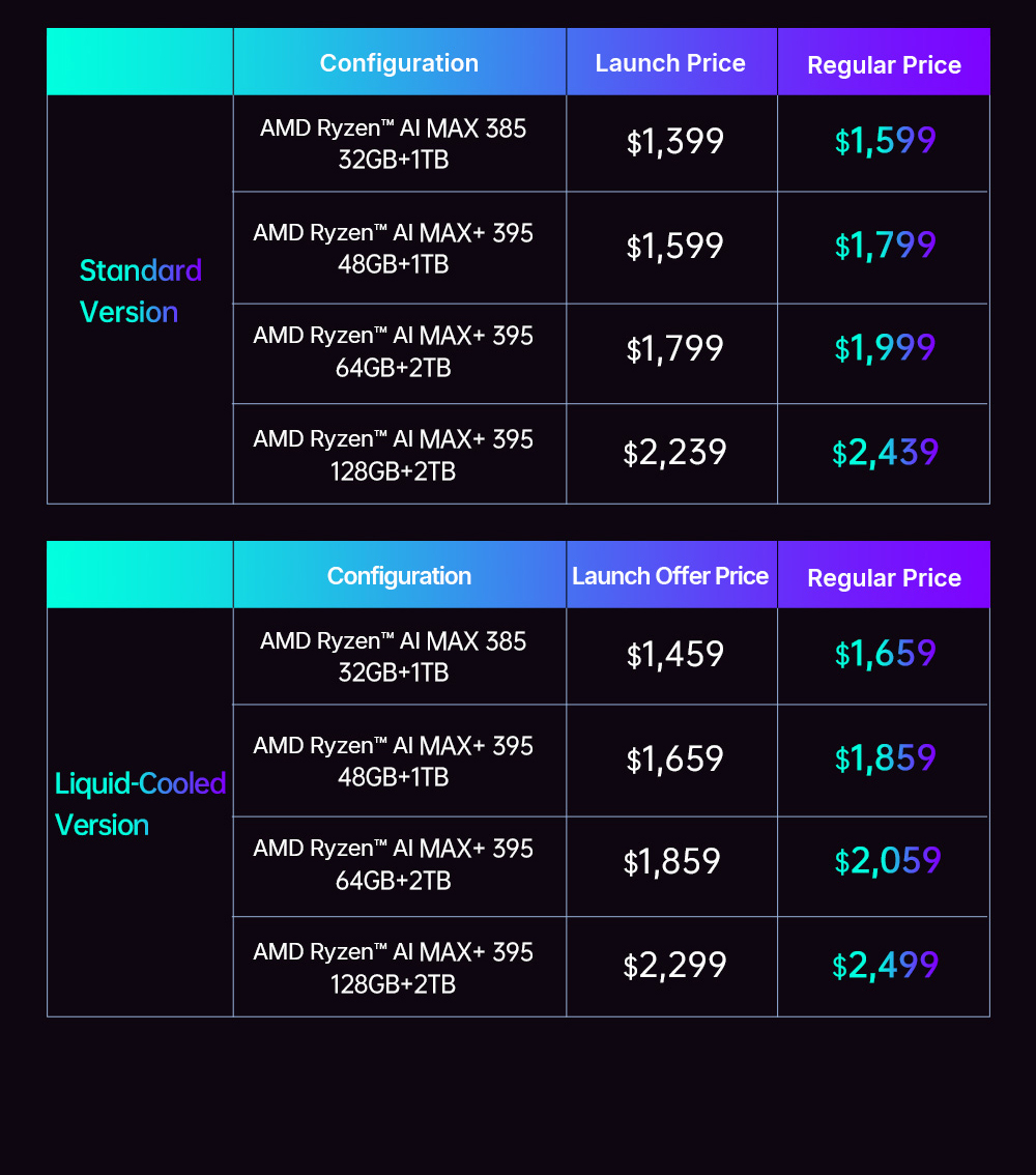 Specifikt började OneXFly Apex på 1 399 $ på Indiegogo med 32 GB RAM, 1 TB lagringsutrymme och en AMD Ryzen AI Max 385 APU med en Radeon 8050S iGPU. För de som är ute efter den kraftfulla Radeon 8060Småste man punga ut med minst 1 599 dollar för Ryzen AI Max+ 395 SKU:er, eller 1 659 USD för One-Netbooks tillvalsvariant med vätskekylning. Tyvärr har företaget meddelat att dessa priser snart kommer att stiga med upp till 14%.