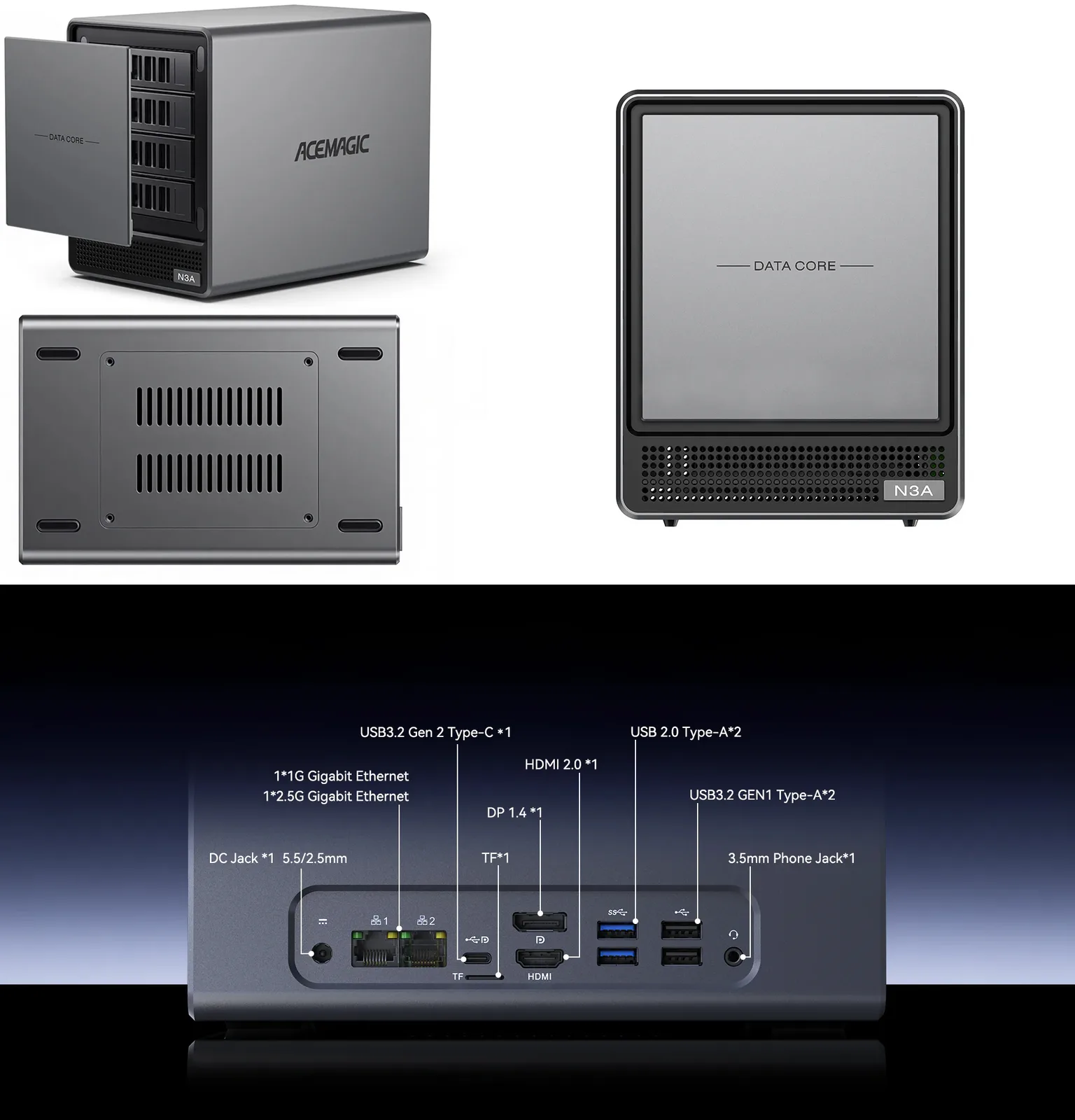 På tal om det, Acemagic säljer N3A utan RAM-minne eller lagringsutrymme. Användare kan utrusta denna hybrid av mini-PC och NAS med upp till 64 GB DDR4 RAM-minne som körs i 3 200 MHz.