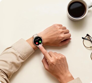 Honor Watch GS 5 är en diskret, rund smartklocka med en diameter på 44 millimeter och en tjocklek på 9,9 millimeter. Ramen är tillverkad av aluminium, medan baksidan är tillverkad av plast. Klockan väger bara 26 gram och är vattentålig upp till 5 ATM, så den kan bäras när du simmar.