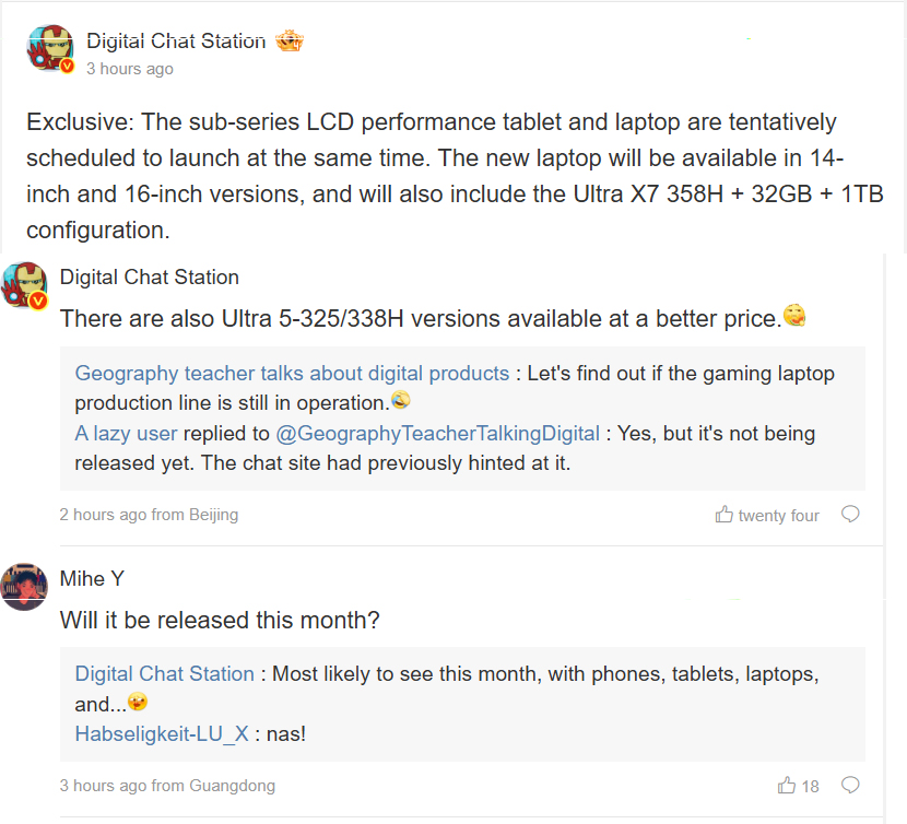 Den pålitliga läckan delar att företaget arbetar med 14-tums och 16-tums versioner av en RedmiBook laptop. Även om läckan inte delade med sig av ett detaljerat specifikationsblad, nämner rapporten att det kommer att finnas en Core Ultra X7 358H-konfiguration tillgänglig. Detta är en mycket kapabel Panther Lake-processor med den mycket kapabla Intel Arc B390 iGPU.