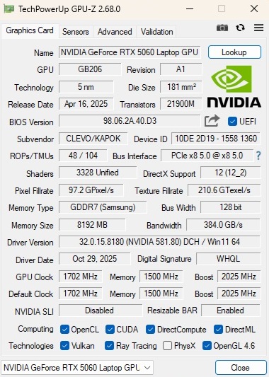 | Tulpar T6 V3.5 i7-14700HX, GeForce RTX 5060 Laptop | Acer Nitro V 16 AI ANV16-42-R860 R5 240, GeForce RTX 5050 Laptop | Alienware 16 Aurora Core 7 240H, GeForce RTX 5060 Laptop | HP Omen 16-ap0091ng R9 8940HX, GeForce RTX 5060 Laptop | Lenovo Legion 5 15AHP G10 R7 260, GeForce RTX 5060 Laptop | Gigabyte Gaming A16 GA6H i7-13620H, GeForce RTX 5070 Laptop | |