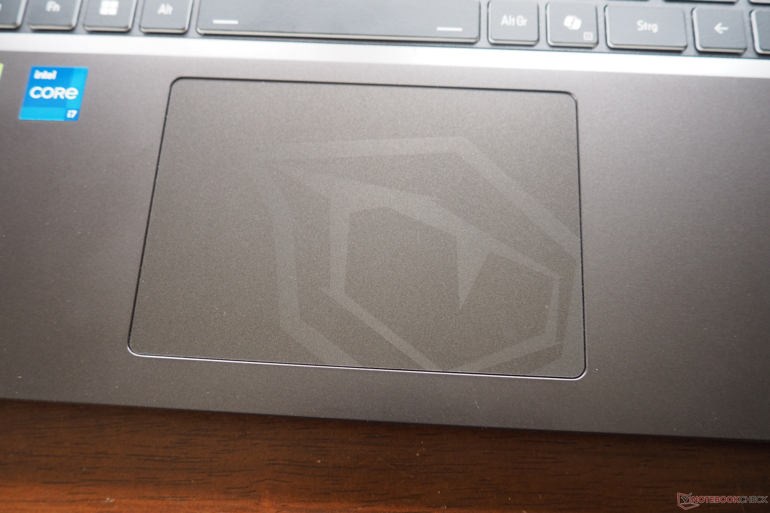 Det finns fortfarande utrymme för förbättringar när det gäller pekplattan, eftersom gestigenkänningen inte alltid är tillförlitlig. Annars erbjuder den solid precision och smidig glidning. Ytan på cirka 12,1 x 8,3 cm är mer än tillräcklig för en 16-tums bärbar dator. Precis som hos flera konkurrenter låter klickmekanismerna lite skramligt.