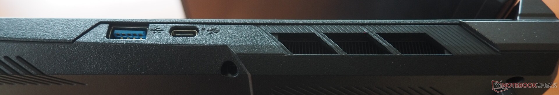 Portarna är utspridda över nästan alla sidor av chassit. Även om det saknar USB 4 eller Thunderbolt, har systemet fortfarande fyra USB-portar (två typ A och två typ C). Externa skärmar är enklast att ansluta via HDMI. En Gigabit LAN-port, ett hörlursuttag och en plats för Kensington-lås ingår också.