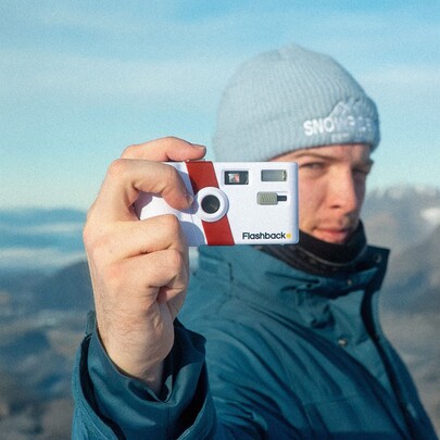 Vid första anblicken ser Flashback One35 V2 ut som en analog 35 mm kompaktkamera, som finns i åtta olika färger, varav två till och med är delvis genomskinliga. Även förpackningen har en retrodesign. En liten optisk sökare och avsaknaden av en display döljer kamerans digitala delar.