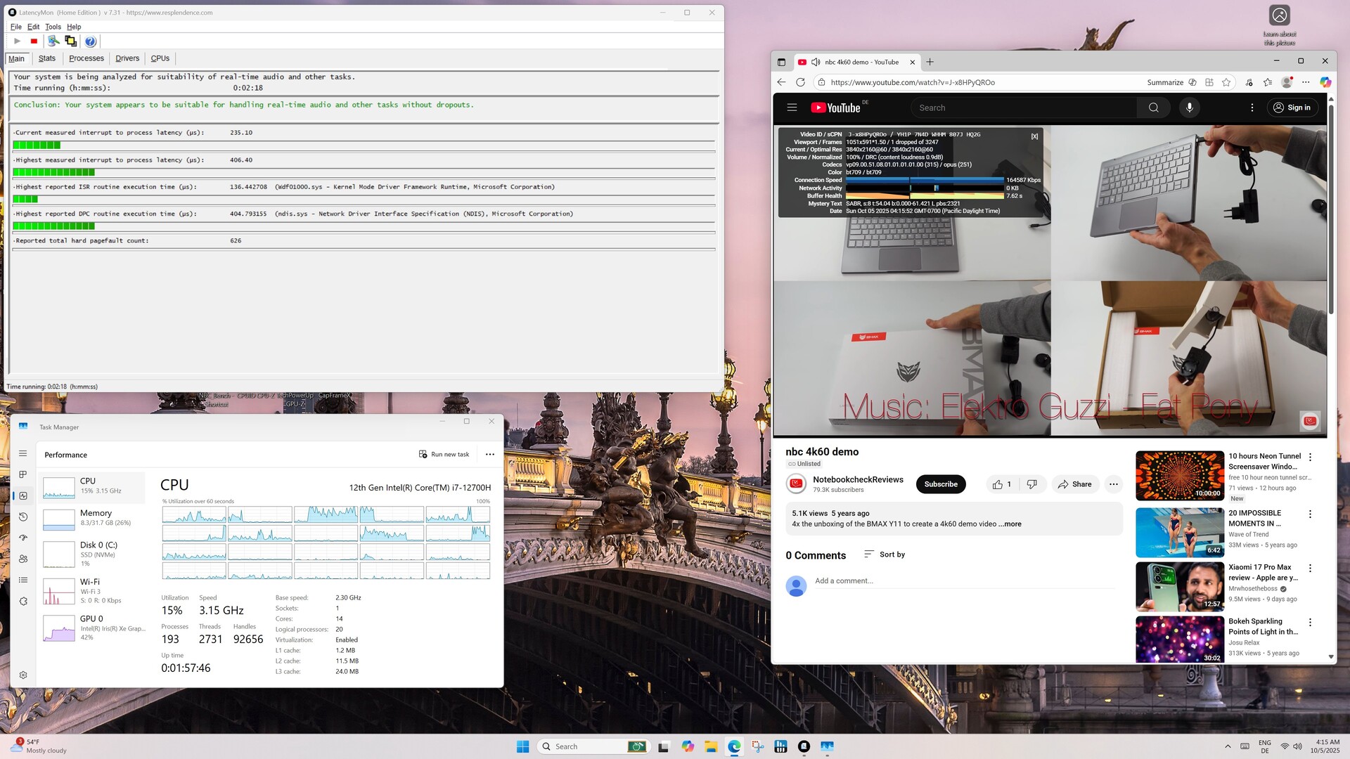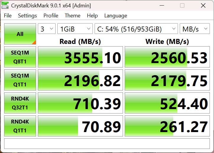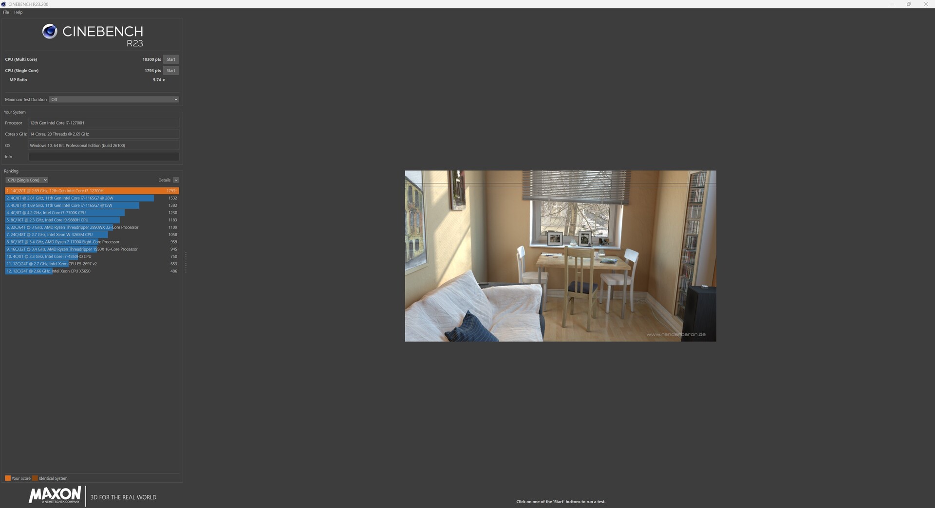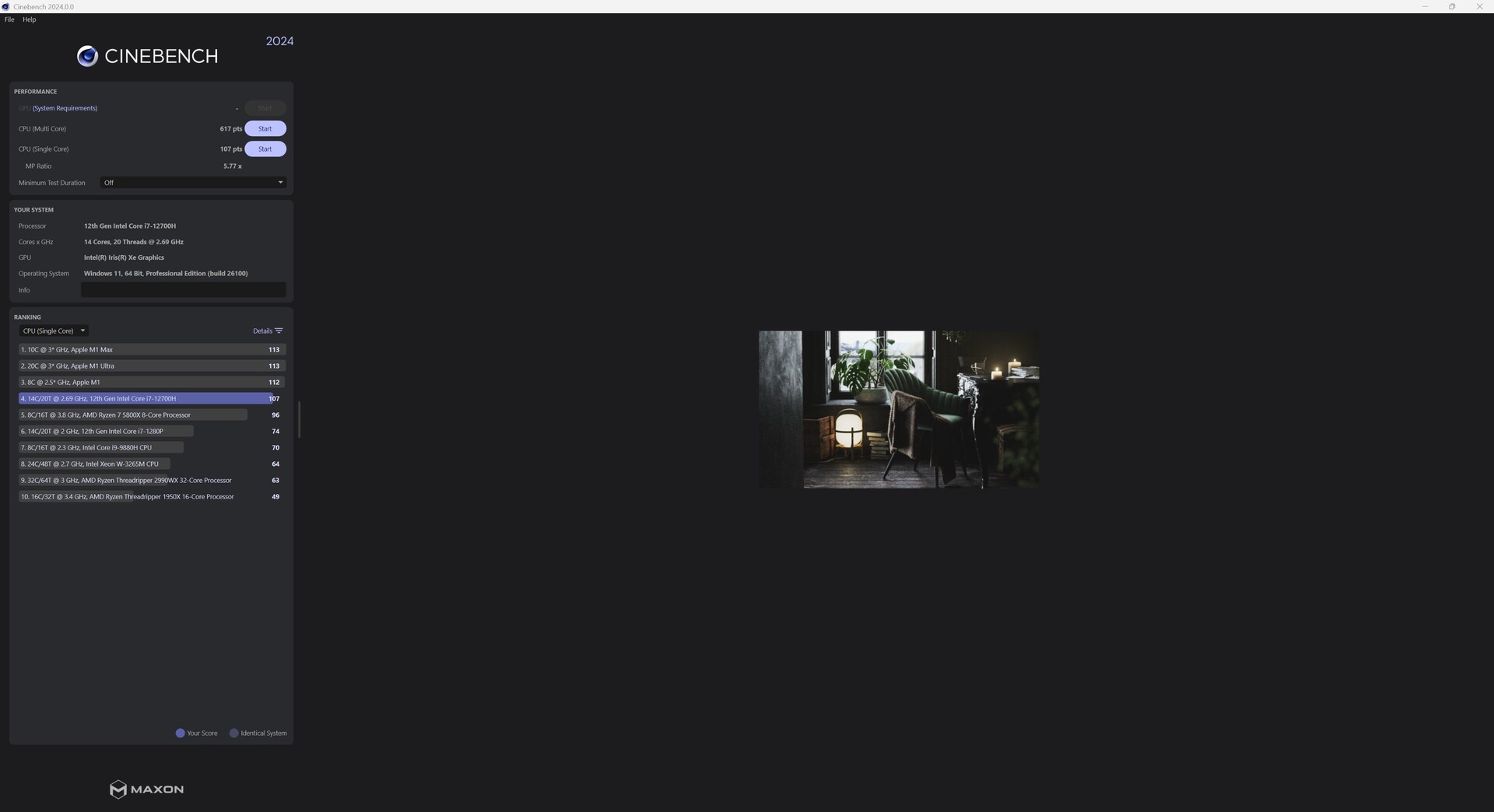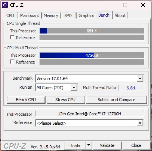 Intel Core Intel Core i7-12700H levererar solid prestanda med sina 14 kärnor (6P + 8E). När det gäller strömförbrukning arbetar SoC endast med 35 watt, vilket är den minsta garanterade prestandan enligt Intels specifikationer. Detta innebär att processorn inte kan hålla jämna steg med sina konkurrenter i flertrådade uppgifter.