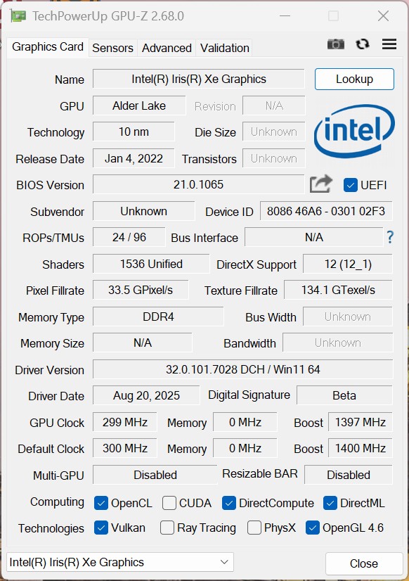 Systemet uppvisar dock små svagheter när det gäller kylning: minidatorn blir hörbar under belastning och fläktstyrningen verkar fortfarande omogen. En mer finjusterad fläktkurva skulle vara önskvärd. En dedikerad GPU saknas, men den integrerade Intel Iris Xe Graphics erbjuder tillräcklig prestanda för multimedia, streaming och enstaka casual gaming. Samtidigt erbjuder anslutningsmöjligheterna bara den enkla standarden utan USB4 eller OCuLink. Motståndare som Minisforum UM890 Pro eller Geekom A8 har en fördel här.