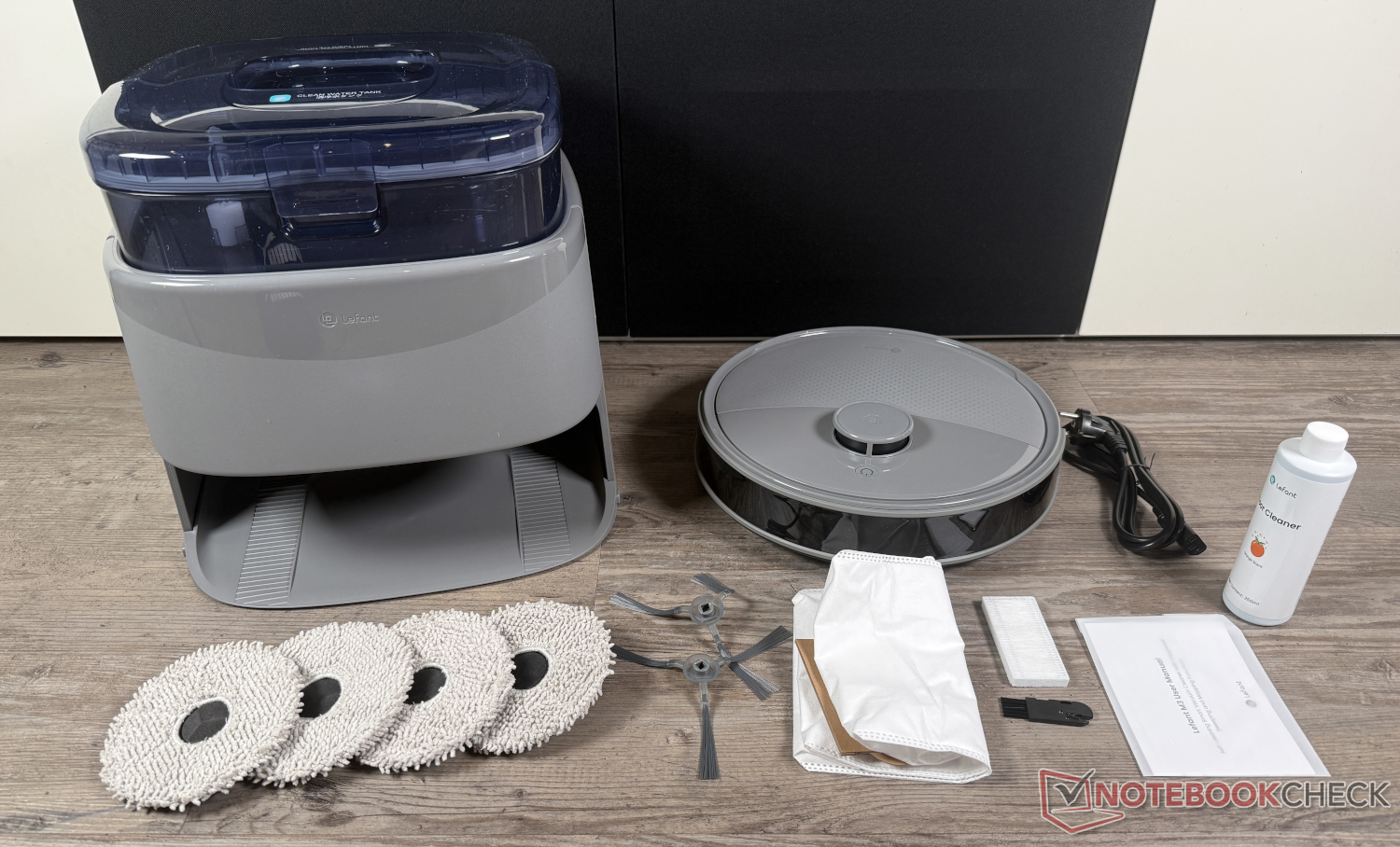 Lefant inkluderar en liten flaska rengöringsmedel. Dessutom ingår en extra dammpåse, två extra moppar och en andra sidoborste tillsammans med den obligatoriska snabbstartguiden.