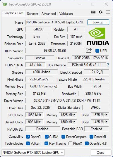Prestanda - RTX 5070 håller Legion snabb