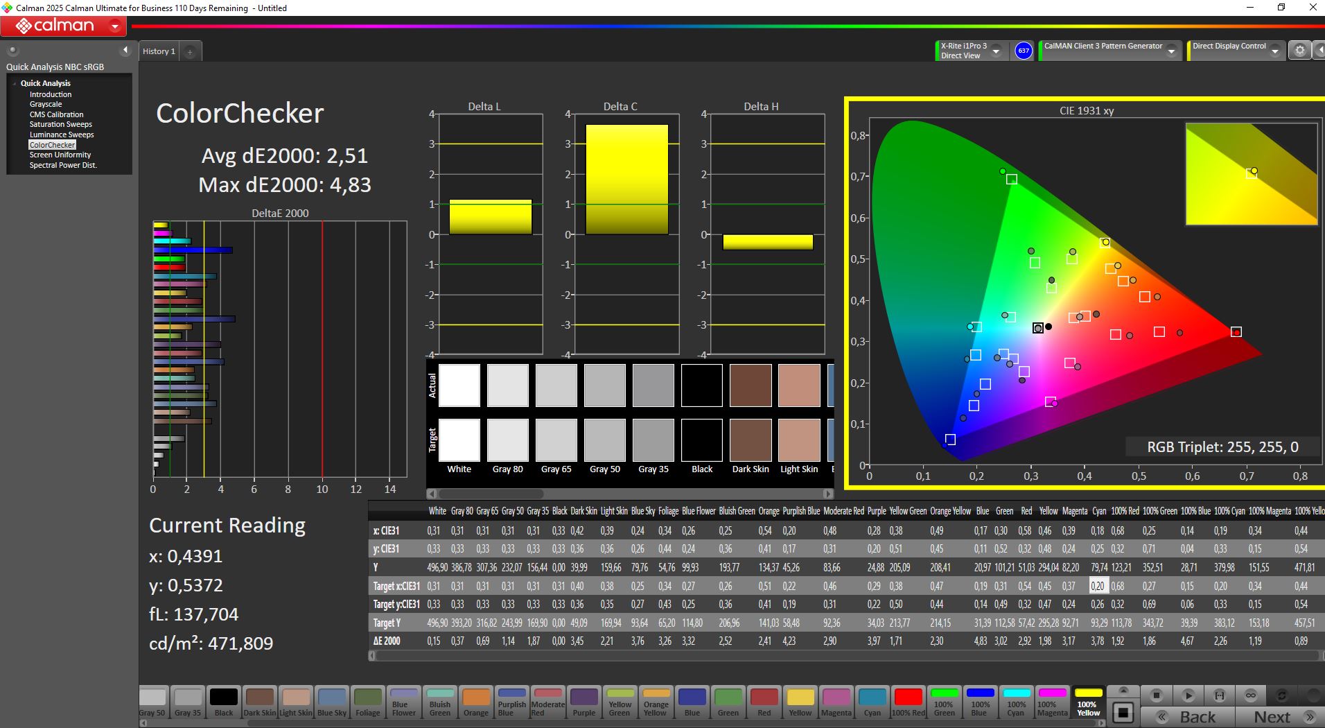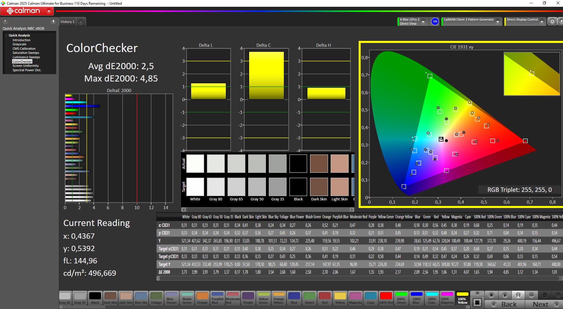 ΔE ColorChecker Calman: 2.5 | ∀{0.5-29.43 Ø4.79}