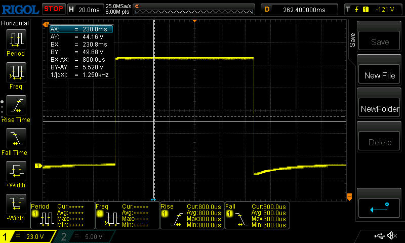 | 1.4 ms ... stiga ↗ och falla ↘ kombinerat | ↗ 0.8 ms stiga | |