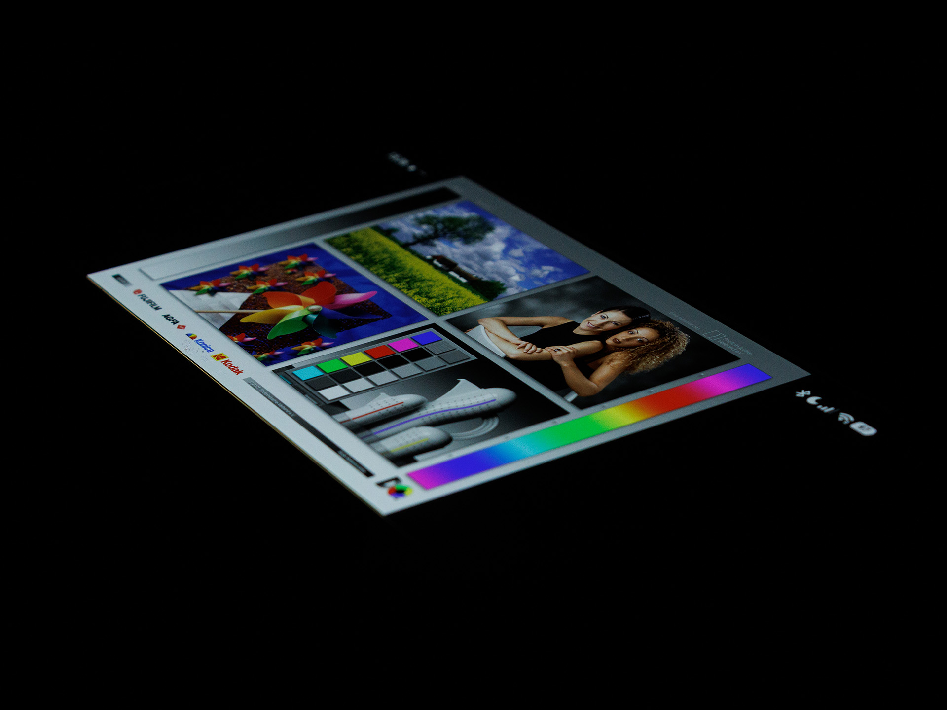 Ljusstyrkan är hög och når cirka 3.500 cd/m² i både APL18- och HDR-mätningarna. När ljusstyrkan justeras manuellt är maximalt 617 cd/m² tillgängligt, medan aktivering av solljusläget möjliggör värden på upp till 821 cd/m².