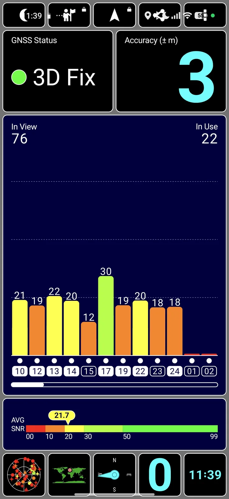 Satellitlåsning uppnåddes mycket snabbt utomhus. Inomhus tog det något längre tid, men det gick ändå förhållandevis snabbt.