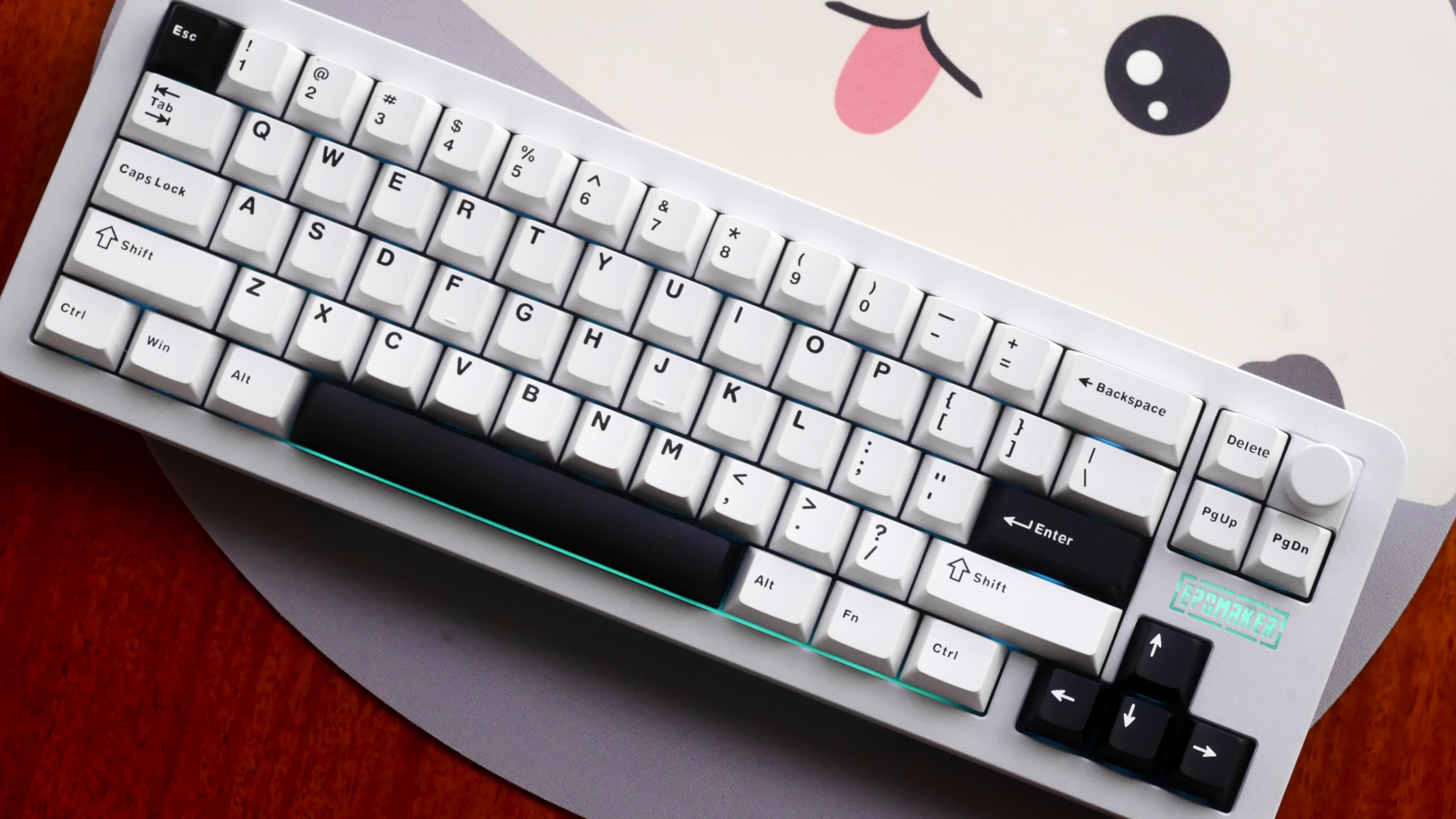 Epomaker Galaxy68 är ett mekaniskt tangentbord med 68 tangenter (65%), Cherry-profilerade dubbelshotade PBT-tangenter, ett pulverlackerat aluminiumhölje med packningsmontering och en anpassningsbar volymratt. Feker Marble White-brytarna i vår granskningsenhet har en lätt aktiveringskraft och tangentbordet erbjuder tri-mode-anslutning.